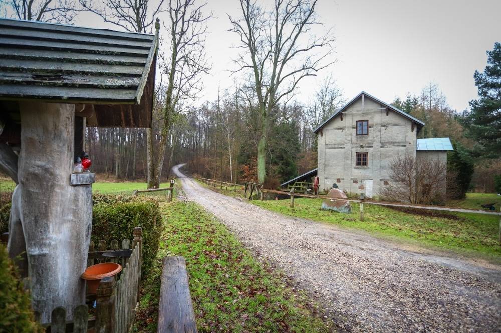 Cała zagroda składa się z murowanego młyna wodnego, który powstał w 1919 roku, kamienno-ceglanej obory (1885 r.) i dworku – domu młynarza (1922 r.). Młyn pracuje na odnodze rzeki Mołtawy i tworzy w tym miejscu mały zalew.