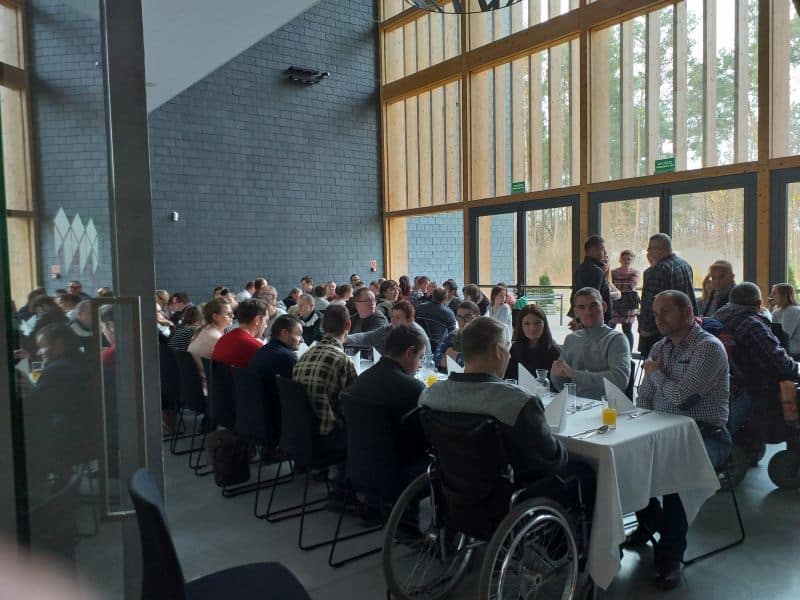 W związku z realizacją zadania nr 6 projektu pt. „Aktywna integracja osób niepełnosprawnych w powiecie płockim” współfinansowanego z Europejskiego Funduszu Społecznego w ramach Osi Priorytetowej IX Wspieranie włączenia społecznego i walka z ubóstwem, Działania 9.1 Aktywizacja społeczno-zawodowa osób wykluczonych i przeciwdziałanie wykluczeniu społecznemu Regionalnego Programu Operacyjnego Województwa Mazowieckiego na lata 2014-2020, w dniu 27 listopada 2018 r. dla uczestników 6 warsztatów terapii zajęciowej działających na terenie powiatu płockiego zorganizowano Działanie integracyjne w Hotelu Skansen w Sierpcu.