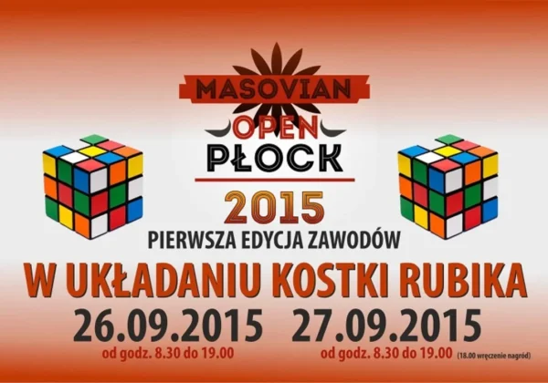 Powiat Płocki jako współorganizator zaprasza w ostatni weekend września na pierwsze w Płocku zawody w układaniu kostki Rubika na czas - Masovian...