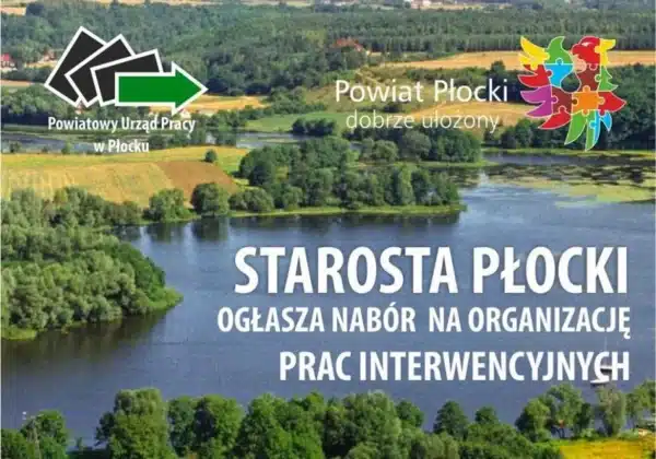 Starosta Płocki za pośrednictwem Powiatowego Urzędu Pracy w Płocku ogłasza nabór na organizację 10 miejsc pracy w pełnym wymiarze czasy pracy...