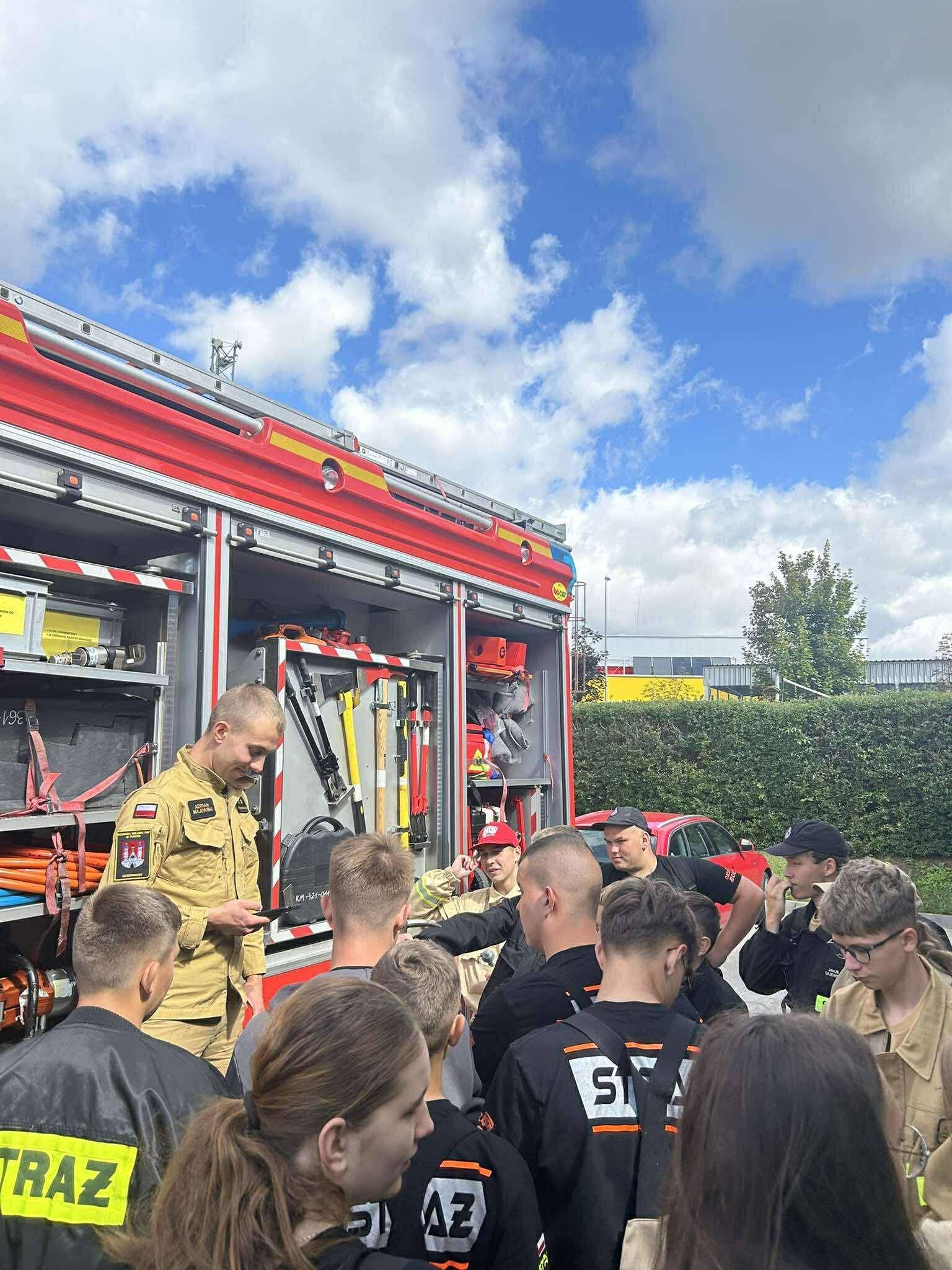 - Ćwiczenia techniczne: rozwijanie i zwijanie węży, przygotowanie linii gaśniczej, obsługa prądownicy.