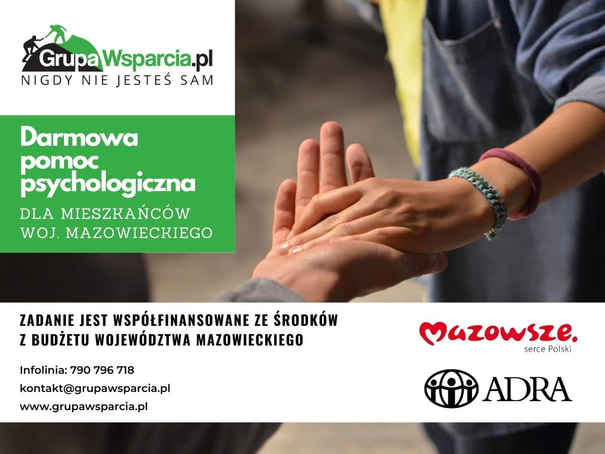 Mieszkańcy województwa mazowieckiego mogą już teraz bezpłatnie uzyskać wsparcie psychologiczne w ramach dedykowanej dla nich grupy wsparcia, dostępnej na platformie GrupaWsparcia.pl. Z pomocy będzie mógł skorzystać każdy mieszkaniec województwa (bez względu na wiek) potrzebujący wsparcia i chcący zadbać o swoją kondycję psychiczną. Projekt jest wynikiem współpracy Zarządu Województwa Mazowieckiego oraz Fundacji ADRA Polska.