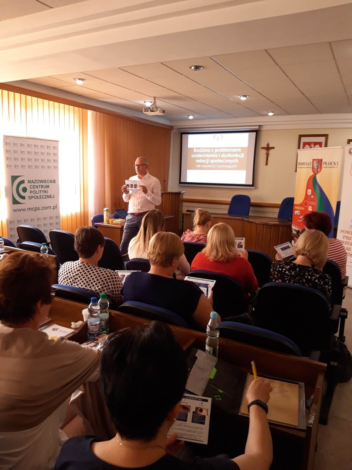 W dniu 18 września 2018r. zgodnie z harmonogramem Powiatowego Programu Przeciwdziałania Przemocy w Rodzinie oraz Ochrony Ofiar Przemocy w Rodzinie na lata 2016-2020 przyjętego Uchwałą nr 132/XIV/2016 Rady Powiatu w Płocku z dnia 30 marca 2016 roku Wydział Edukacji, Kultury i Spraw Społecznych Starostwa Powiatowego w Płocku zorganizował warsztaty edukacyjno – metodyczne dla członków grup roboczych i Zespołów Interdyscyplinarnych z terenu Powiatu Płockiego realizujących zadania wynikające z ustawy o przeciwdziałaniu przemocy i rozporządzenia dotyczącego realizacji procedury „Niebieskie Karty”, przedstawicieli szkół prowadzonych przez powiat płocki, pracowników Powiatowej Poradni Psychologiczno – Pedagogicznej w Płocku oraz Powiatowego Centrum Pomocy Rodzinie w Płocku.