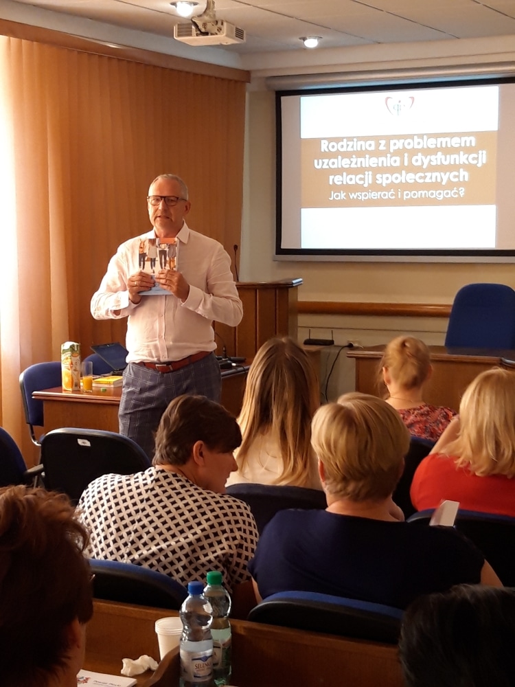 - Pierwszy temat to „Rodzina z problemem uzależnienia i dysfunkcji relacji społecznych”. Warsztaty poprowadził dr prof. nadzw. Mariusza Jędrzejko Dyrektor Naukowy Centrum Profilaktyki Społecznej oraz Agnieszka Taper – socjolog z Centrum Profilaktyki Społecznej, która od lat szkoli dzieci, rodziców i nauczycieli z zakresu zagrożeń związanych z cyberprzestrzenią i uczy jak im zapobiegać.