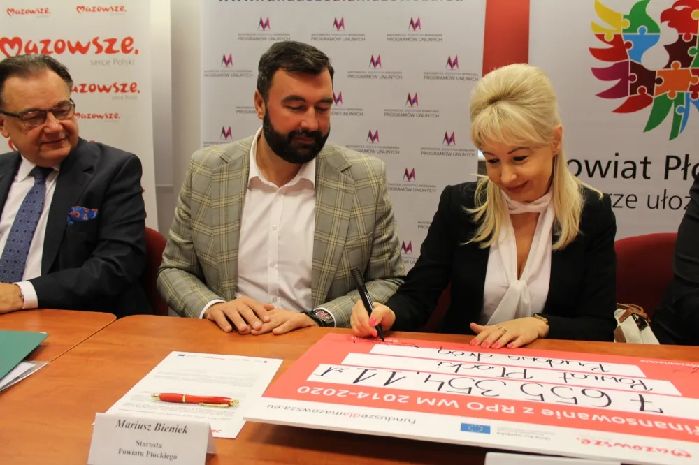 Dziś Marszałek Adam Struzik oraz Wicemarszałek Wiesław Raboszuk oraz Starosta Płocki Mariusz Bieniek, Wicestarosta Iwona Sierocka, Skarbnik Maria Jakubowska podpisali umowę na 7,6 mln na remont drogi Szumanie-Bielsk w Gminie Bielsk.