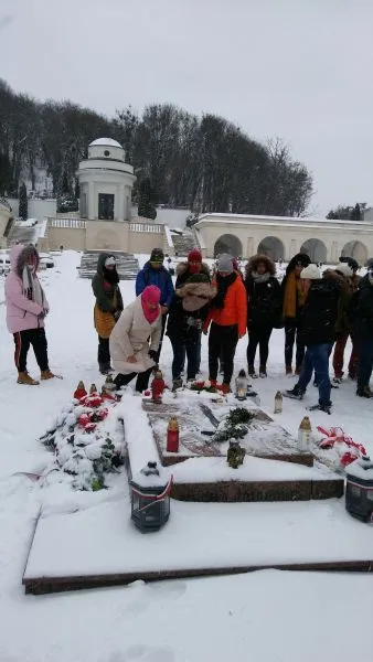 Tu również nie brakowało serdecznych powitań, czułych słów i wzruszających opowieści. Kolejnego dnia rankiem wyruszyliśmy do Lwowa. Po przyjeździe i zakwaterowaniu mieliśmy czas na zwiedzanie i podziwianie uroków lwowskiej starówki. Następny dzień rozpoczęliśmy od wyjazdu na Cmentarz Łyczakowski, gdzie złożyliśmy kwiaty oraz zapaliliśmy znicze na grobach polskich żołnierzy. W atmosferze zadumy udaliśmy się na mszę św. Potem już tylko krótka chwila na pamiątkowe zdjęcia i droga powrotna do Płocka.