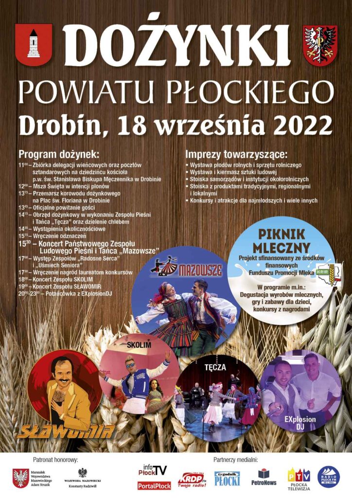 W najbliższą niedzielę, 18 września, serdecznie zapraszamy do Drobina, gdzie odbędą się Dożynki Powiatu Płockiego!