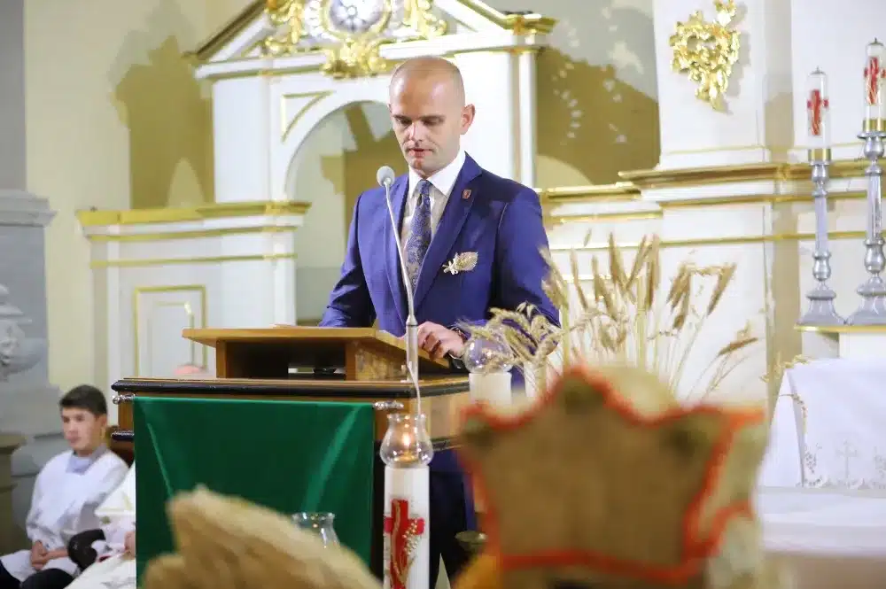 – Jako gospodarz Ziemi Płockiej chcę Państwu serdecznie podziękować za to, że w tych trudnych czasach zawsze możemy na Was liczyć. W tych trudnych czasach byliśmy i jesteśmy wzruszeni Państwa postawą, bezinteresowną chęcią niesienia pomocy, empatią i zwykłą ludzką solidarnością. Jesteście siłą naszej Ojczyzny, to dzięki Wam nadal sprawnie funkcjonujemy – zwracał się do rolników podczas Dożynek Powiatu Płockiego Starosta Płocki Sylwester Ziemkiewicz.