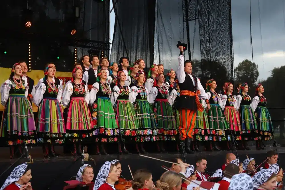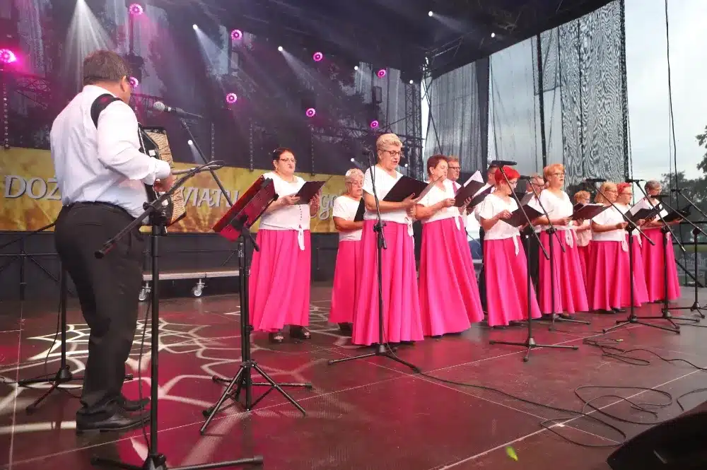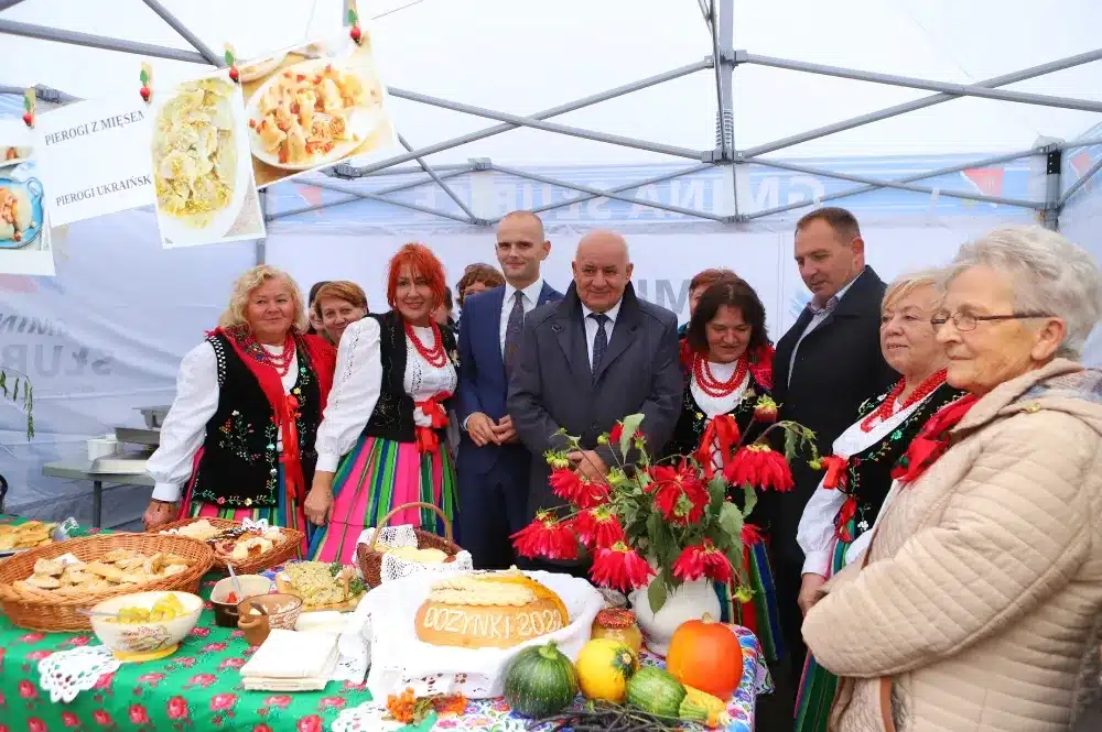 Podczas Dożynek nie zabrakło oczywiście dzielenia się chlebem oraz obrzędu dożynkowego, który wykonał Zespół Pieśni i Tańca „Tęcza”.