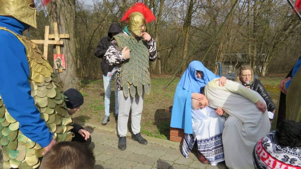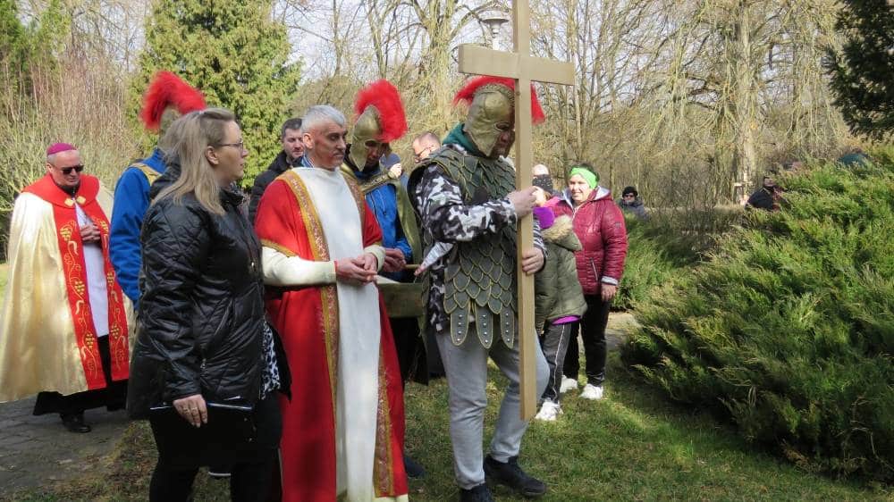 Uczestnicy przeszli krużgankami i dziedzińcem Antoniówki, gdzie przygotowane były poszczególne stacje Drogi Krzyżowej. Mieszkańcy Domu wraz z opiekunami przygotowali ją z wielką starannością. Droga krzyżowa to wielkopostne nabożeństwo upamiętniające i symbolicznie odtwarzające ostatnią drogę Jezusa Chrystusa, skazanego na śmierć krzyżową na górze Golgota. Ceremonii przewodniczył Biskup Płocki Szymon Stułkowski.