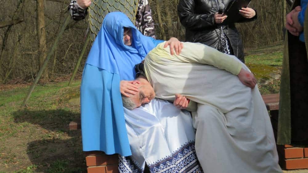 Uroczystość rozpoczęła się przywitaniem przybyłych osób przez Dyrektor Domu Joannę Siemiątkowską i Zastępcę Dyrektora Adama Pawłowskiego, którzy następnie zaprosili wszystkich zebranych do wspólnego przeżywania Drogi Krzyżowej.