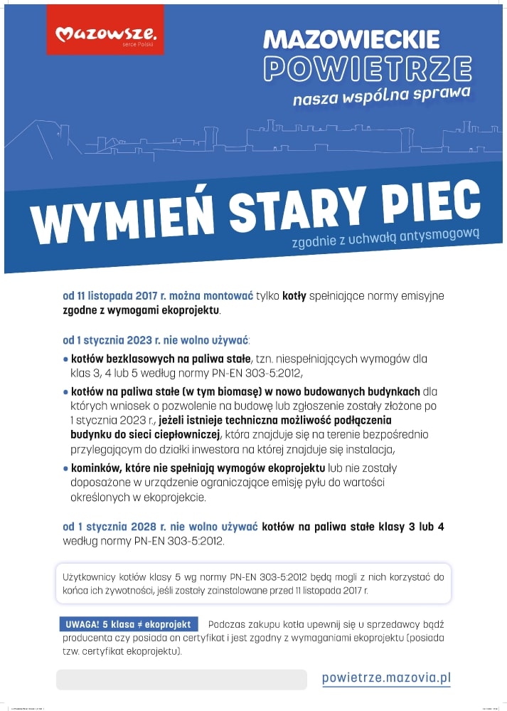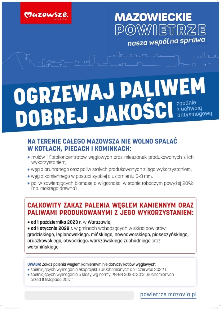 • Uchwała antysmogowa wprowadzona na terenie województwa mazowieckiego stanowi akt prawa miejscowego i obowiązuje wszystkich mieszkańców województwa, samorządy oraz podmioty działające na jego terenie.