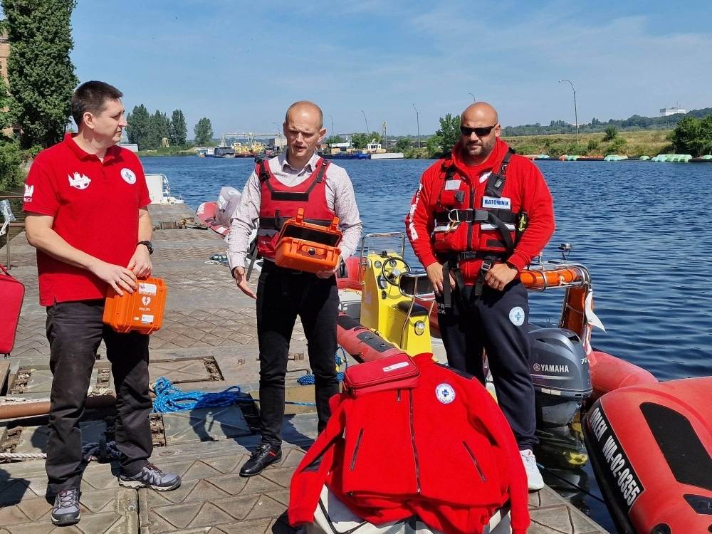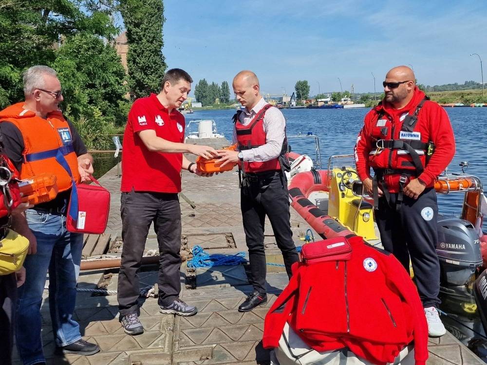 Z tej okazji Starosta Płocki Sylwester Ziemkiewicz uczestniczył w pokazie sprzętu WOPR w Płocku. Ratownicy omówili także sytuację bezpieczeństwa na Wiśle. W ramach podziękowań za dotychczasową służbę na rzecz bezpieczeństwa, Starosta przekazał defibrylatory szkoleniowe, które będą wykorzystywane do szkoleń z zakresu pierwszej pomocy.