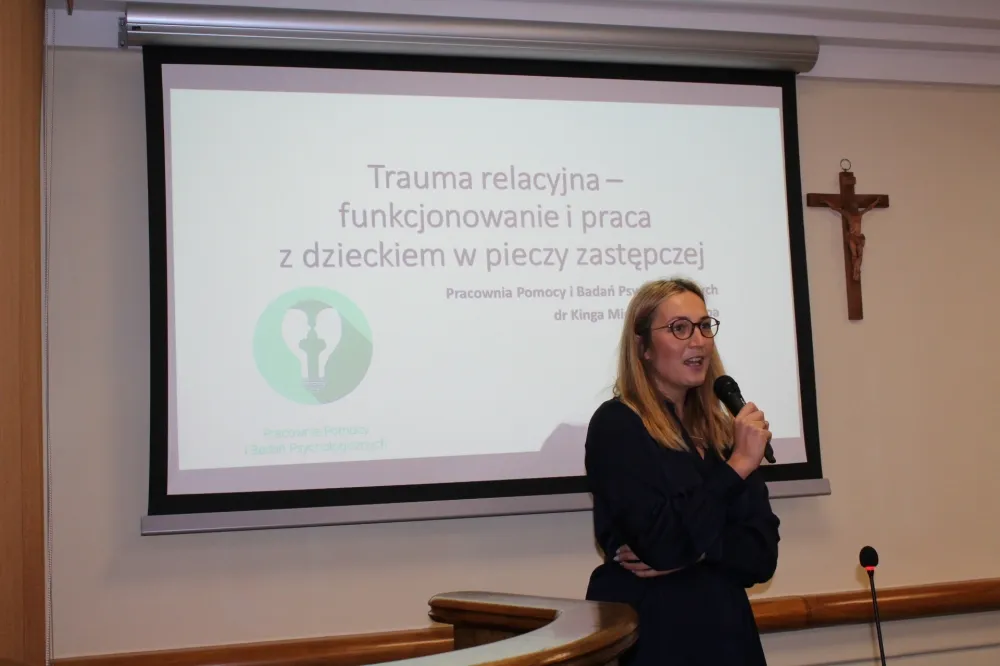 Uczestnicy wysłuchali też bardzo ciekawego i przydatnego w pracy wykładu pt. „Trauma relacyjna – funkcjonowanie i praca z dzieckiem w pieczy zastępczej”. Wykład wygłosiła dr Kinga Mickiewicz – Stopa.