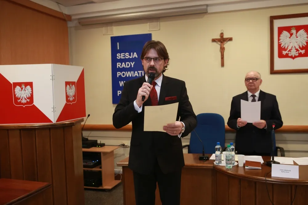 Następnie odbyło się ślubowanie. Każdy Radny czytał następujące słowa: „Uroczyście ślubuję rzetelnie i sumiennie wykonywać obowiązki wobec Narodu Polskiego, strzec suwerenności i interesów Państwa Polskiego, czynić wszystko dla pomyślności Ojczyzny, wspólnoty samorządowej powiatu i dobra obywateli, przestrzegać Konstytucji i innych praw Rzeczypospolitej Polskiej”. Chętni mogli dopowiedzieć: „Tak mi dopomóż Bóg”. Podczas ślubowania wszyscy stali, panowało absolutne skupienie i czuć było wyjątkowość tej chwili.