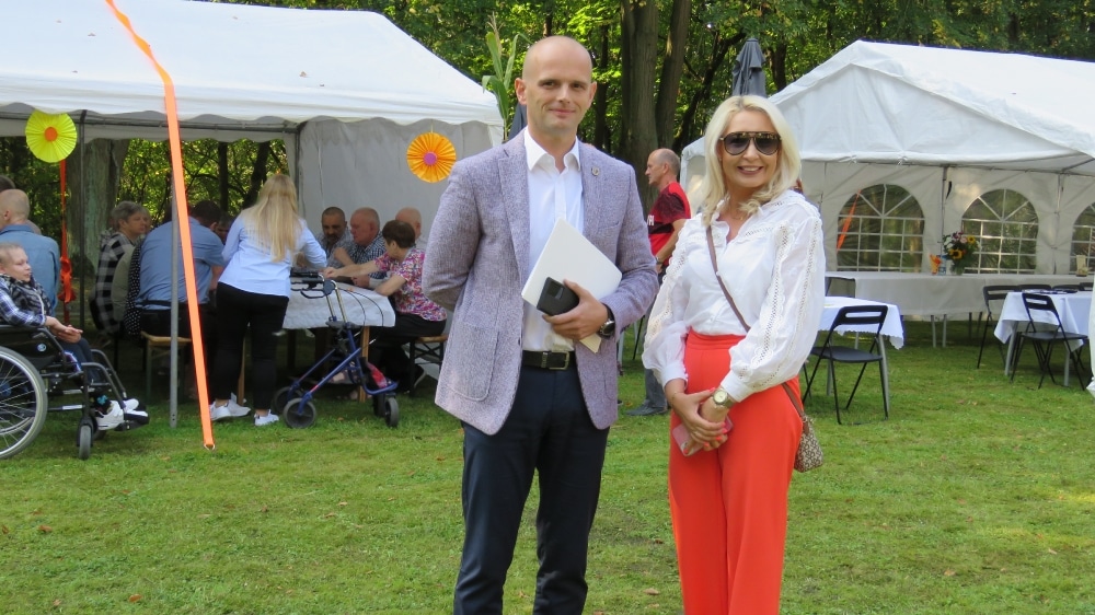 Starosta Płocki Sylwester Ziemkiewicz również podkreślił, że to święto całej wspólnoty związanej z DPS-em w Brwilnie. – Pomoc społeczna w naszym samorządzie zajmuje szczególne miejsce. To Wy, pracownicy i mieszkańcy, tworzycie wspaniałą, piękną rodzinę osób, które się o siebie troszczą i dbają. Może niektórym ludziom zależałoby na uderzeniu w tę wspólnotę poprzez rozpowszechnianie nieprawdziwych informacji, ale mocno wierzę, że dobro zawsze zwycięży! – powiedział Starosta, wręczając na ręce dyrekcji DPS-u, wspólnie z Wicestarostą Iwoną Sierocką, kwiaty i upominek.