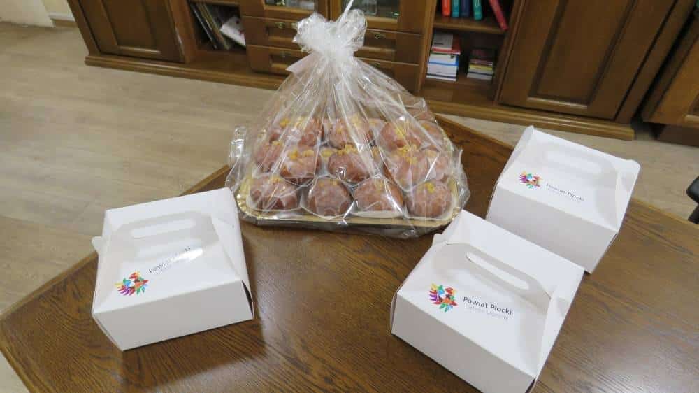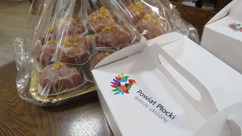 Dziś pączki rozdaliśmy błyskawicznie ! Zwycięzcy konkursu odebrali je z rąk Starosty Płockiego Sylwestera Ziemkiewicza i Wicestarosty Iwony Sierockiej,  którzy patronowali pysznemu konkursowi.