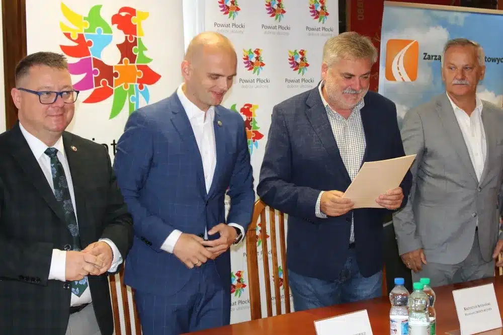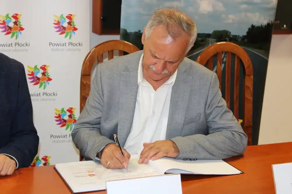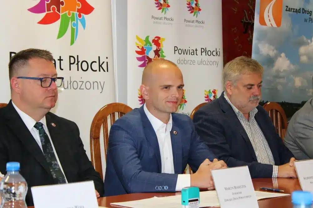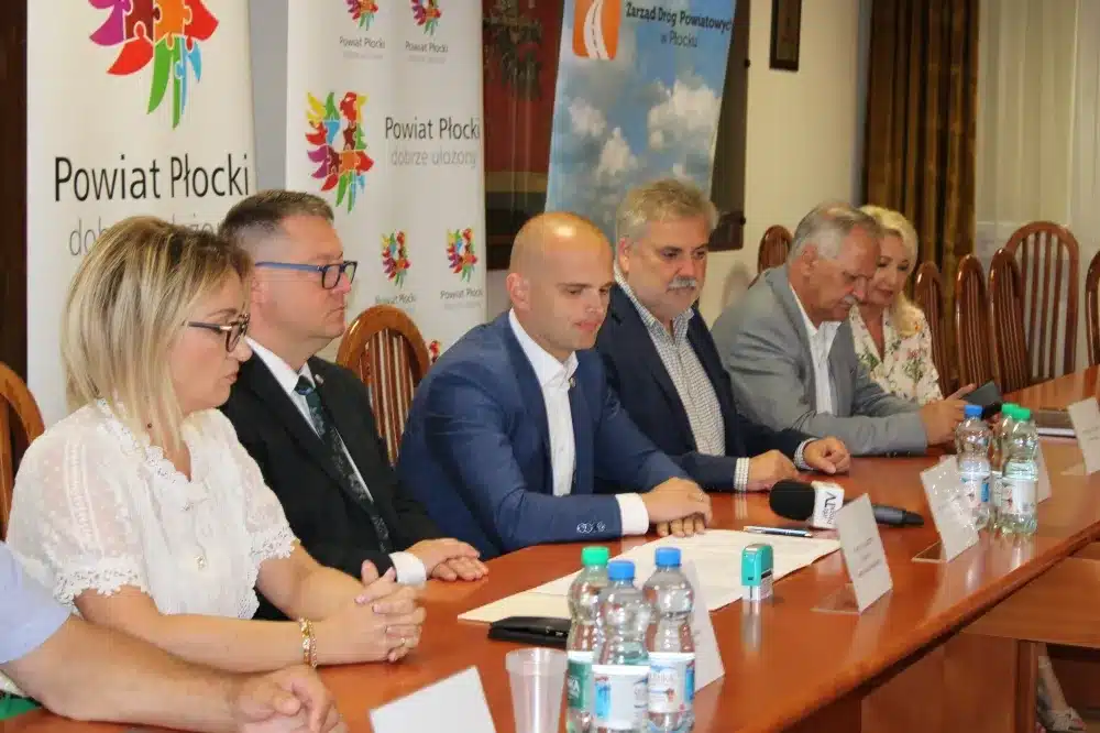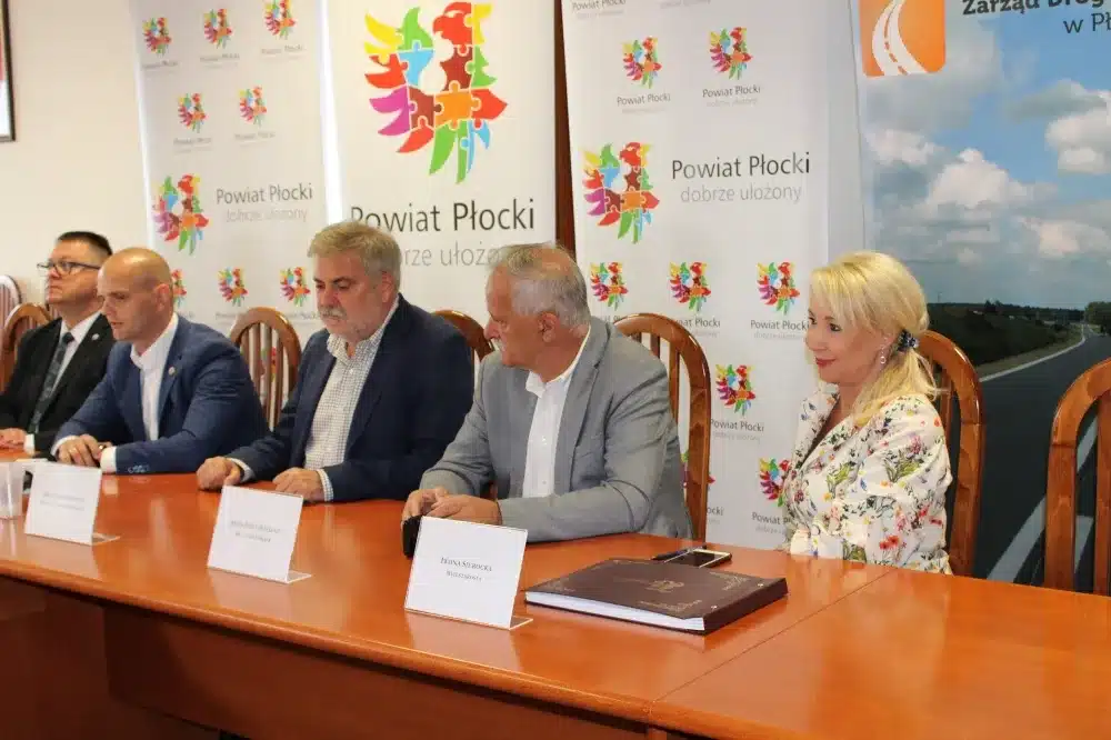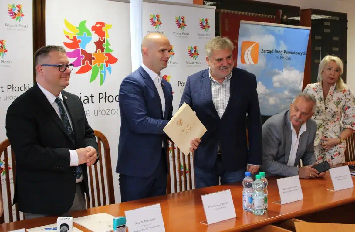 We wtorek, 09 sierpnia 2022 roku, w siedzibie Starostwa Powiatowego w Płocku umowę na wykonanie prac podpisali Starosta Płocki Sylwester Ziemkiewicz, Krzysztof Szymański właściciel firmy Mosty Kujawy oraz Marcin Błaszczyk Dyrektor Zarządu Dróg Powiatowych w Płocku. Na spotkaniu obecni byli również: Wicestarosta Iwona Sierocka, Wójt Gminy Bielsk Józef Jerzy Rozkosz, Wiceprzewodnicząca Rady Powiatu Magdalena Woja i radny Bogusław Jankowski.