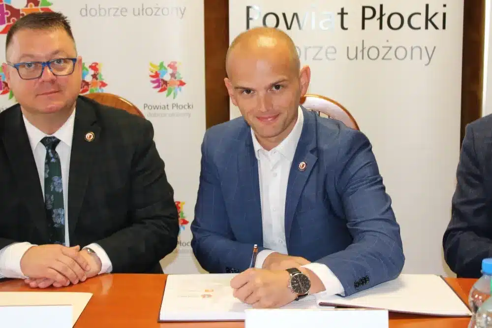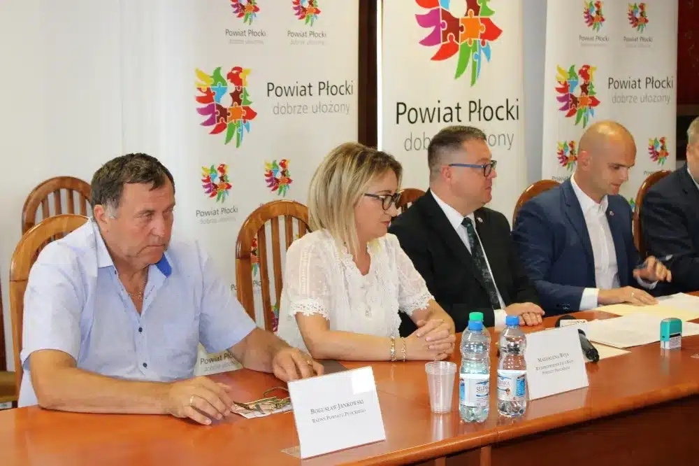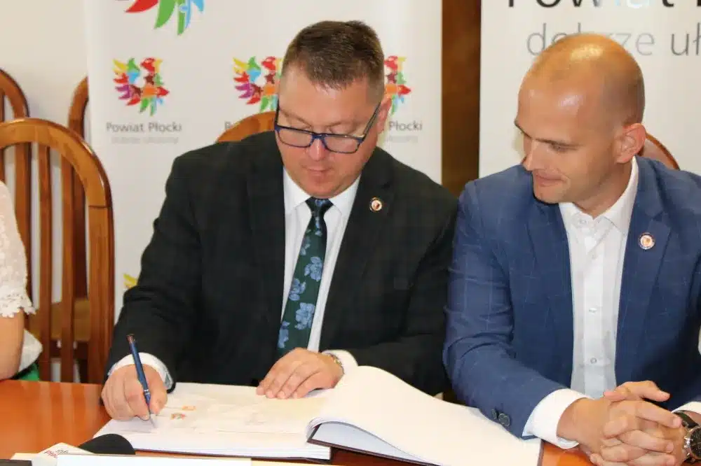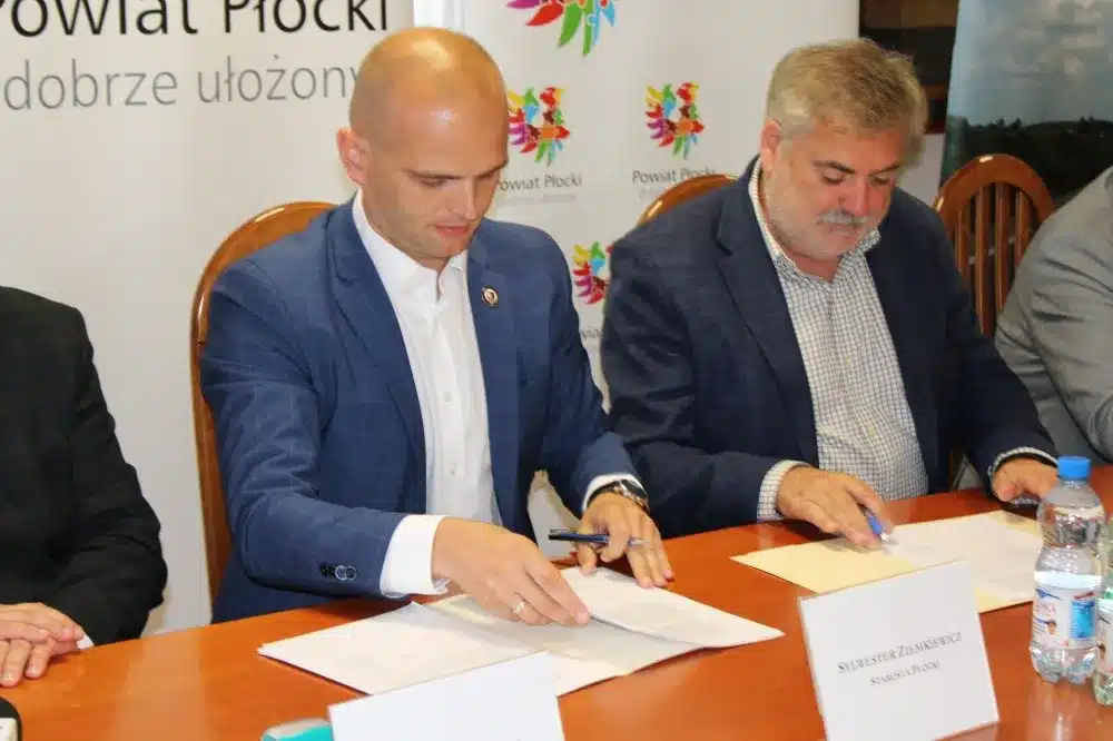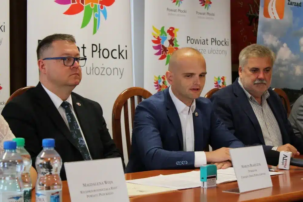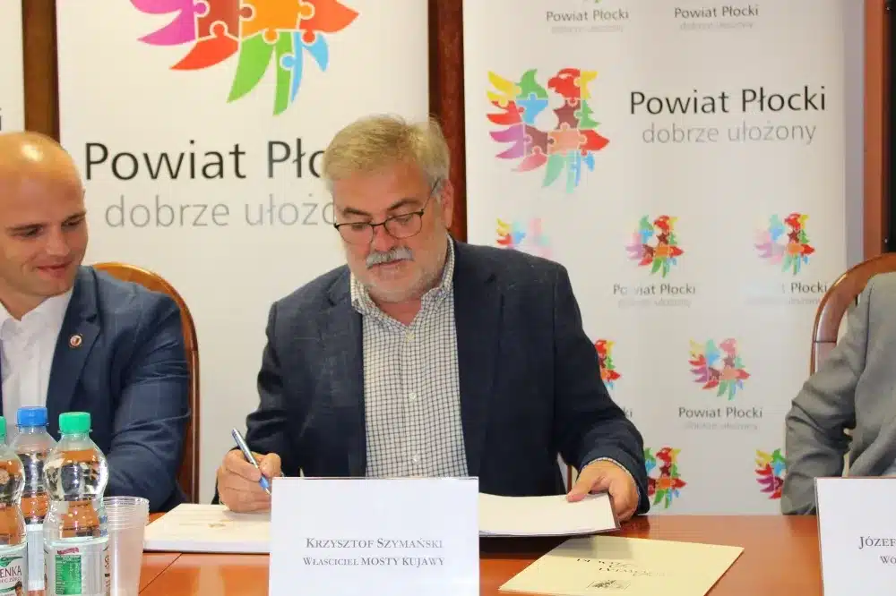 We wtorek, 09 sierpnia 2022 roku, w siedzibie Starostwa Powiatowego w Płocku umowę na wykonanie prac podpisali Starosta Płocki Sylwester Ziemkiewicz, Krzysztof Szymański właściciel firmy Mosty Kujawy oraz Marcin Błaszczyk Dyrektor Zarządu Dróg Powiatowych w Płocku. Na spotkaniu obecni byli również: Wicestarosta Iwona Sierocka, Wójt Gminy Bielsk Józef Jerzy Rozkosz, Wiceprzewodnicząca Rady Powiatu Magdalena Woja i radny Bogusław Jankowski.