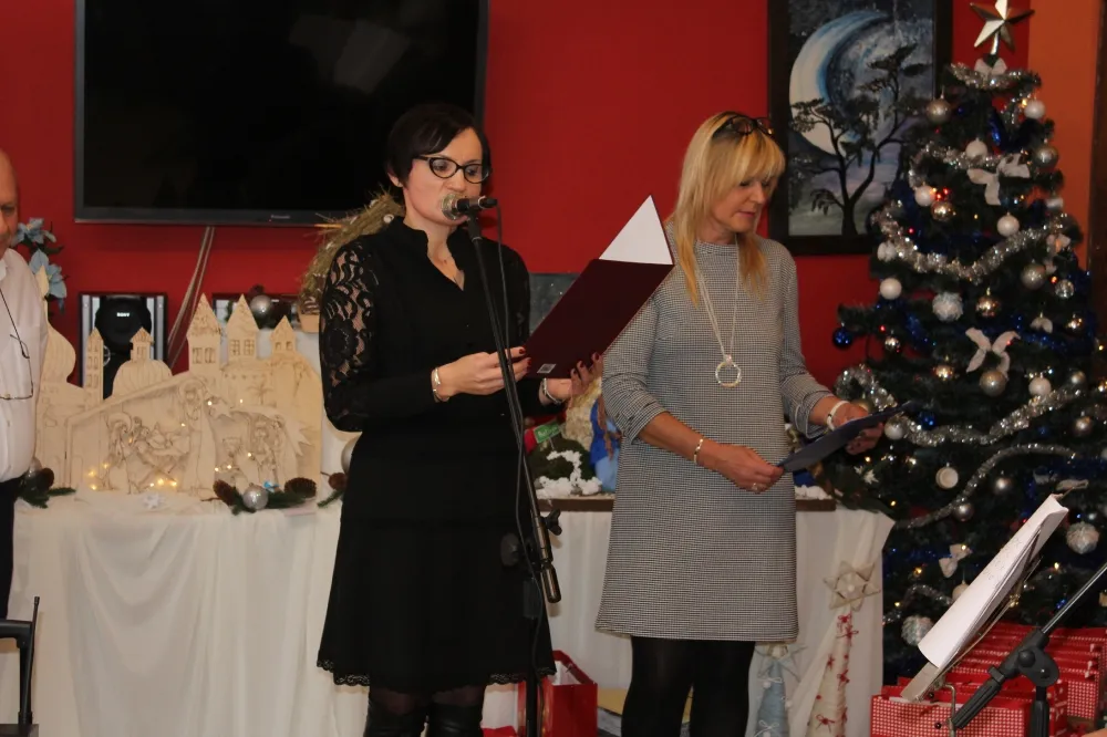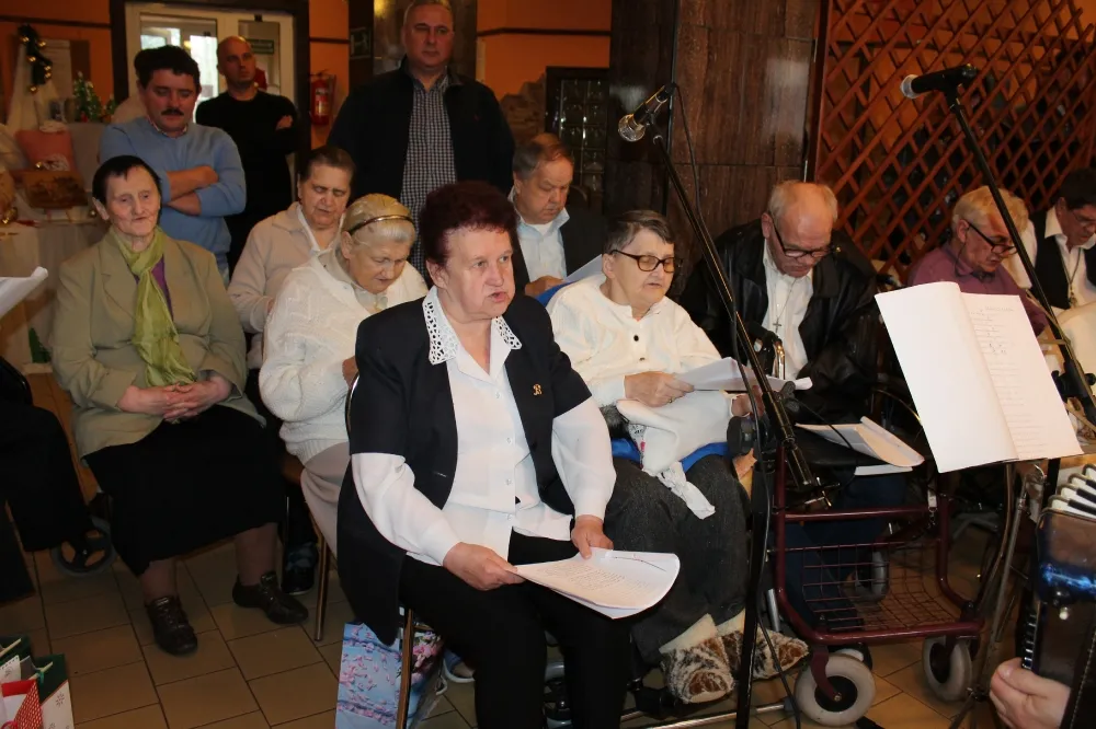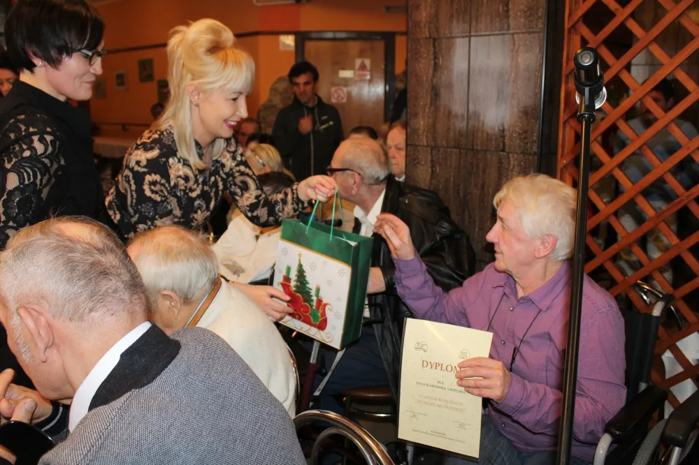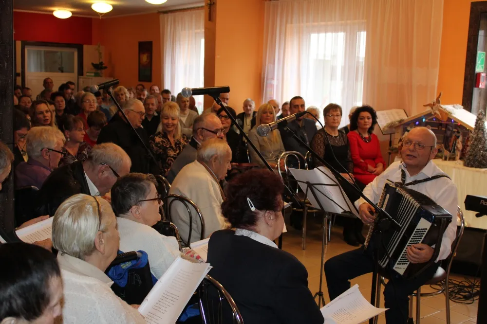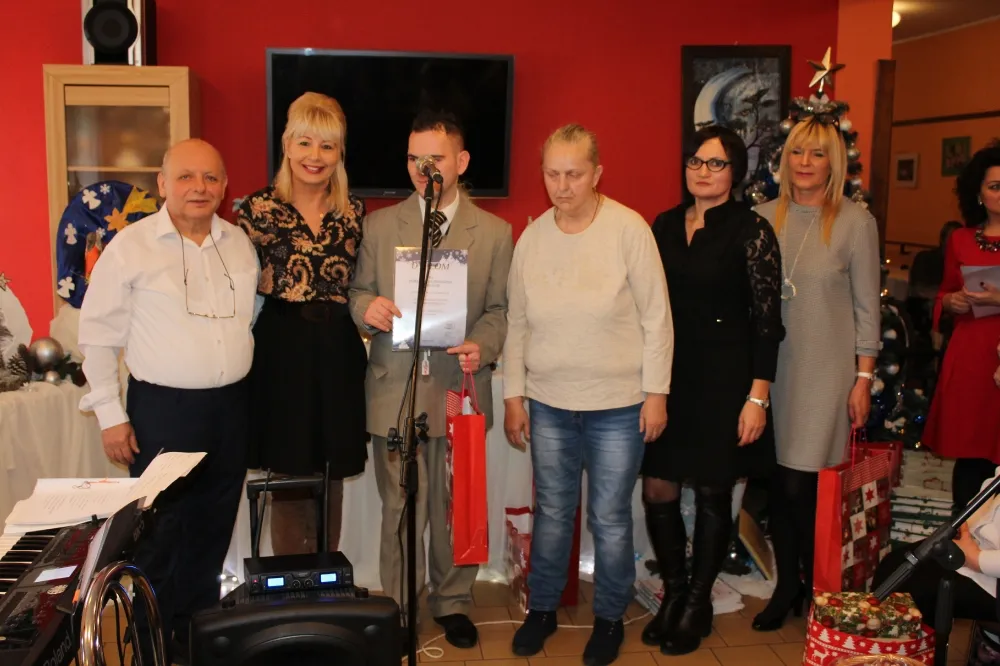 Całość uświetnił występ młodzieży z Zespołu Szkół im. Stanisława Staszica w Gąbinie, a całe spotkanie zakończyło się wręczeniem nagród mieszkańcom domu, których prace znalazły się we wspomnianym kalendarzu, wspólnym kolędowaniem z zespołem „Mucha” i słodkim poczęstunkiem.