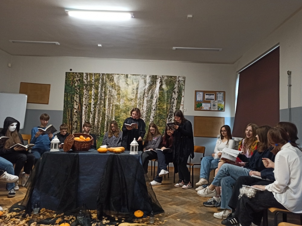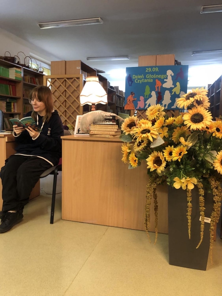 – Dzień głośnego czytania (głośne czytanie przez uczniów na poszczególnych lekcjach wybranych fragmentów literatury, wieczernica – wspólne czytanie w internacie szkolnym, wystawka ,,Zalety głośnego czytania”);