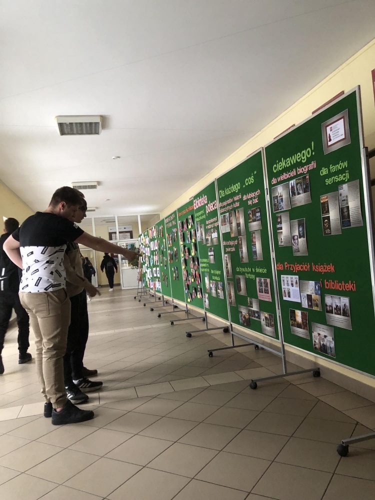 – Wykorzystano również ściankę na zaprezentowanie prac konkursowych „Nowa twarz książki”. Wszystkie prezentowane wydarzenia zostały umieszczone w łączniku szkolnym – miejscu najbardziej uczęszczanym przez uczniów. Uczniom przypadł bardzo do gustu konkurs, w którym zmieniali okładkę książki podczas sesji zdjęciowej. Świadczy o tym mnóstwo zdjęć napływających poza konkursem.