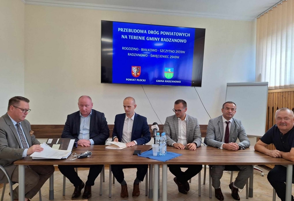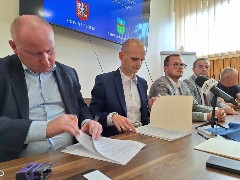 Umowy podpisali: Starosta Płocki Sylwester Ziemkiewicz i przedstawiciel firmy DROG-BET z Sochaczewa – wykonawca inwestycji, a w spotkaniu uczestniczyli: Wójt Gminy Radzanowo Piotr Jakubowski, Wiceprzewodniczący Rady Gminy Radzanowo Jan Kazimierz Gajewski, Dyrektor Zarządu Dróg Powiatowych w Płocku Marcin Błaszczyk, Radni Powiatu Płockiego Paweł Tokarski i Paweł Jakubowski a także Radni Gminy Radzanowo.