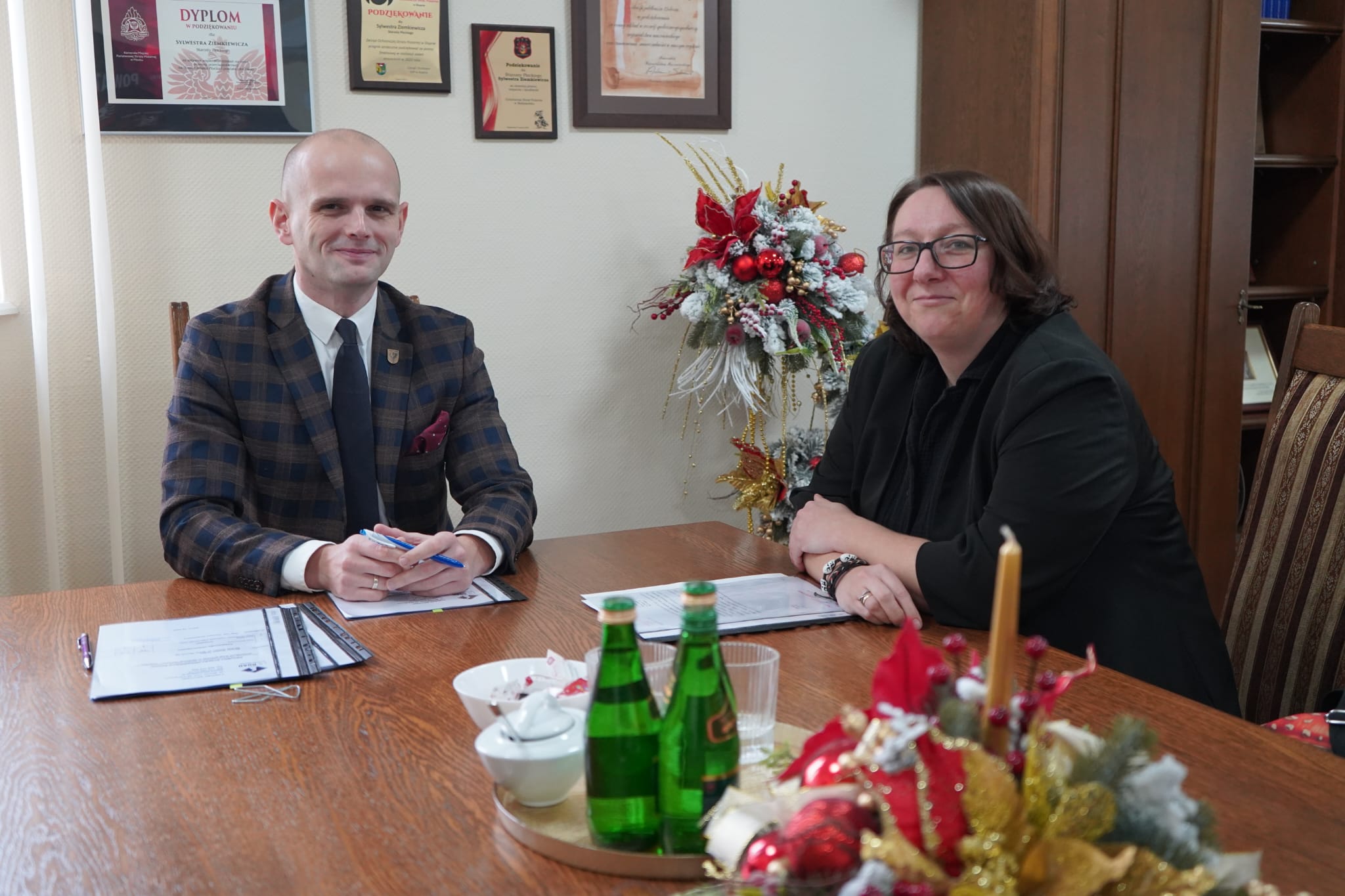 Nowa Pani Starosta objęła swoją funkcję w czwartek, 11 grudnia. Zaczęła od spotkania ze Starostą Sylwestrem Ziemkiewiczem i wypróbowania jego fotela, który okazał się całkiem wygodny.