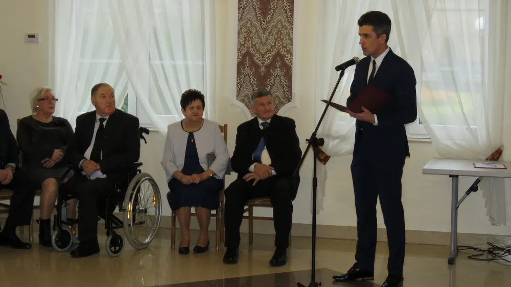 Po wystąpieniu wójta, również zaproszeni goście składali życzenia dostojnym Jubilatom, wręczali listy gratulacyjne oraz drobne upominki.