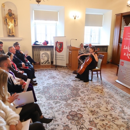 Goście mieli okazję także wysłuchać koncertu poetycko – muzycznego w wykonaniu uczniów I Prywatnego Liceum Plastycznego im. Władysława Drapiewskiego w Płocku oraz Państwowej Szkoły Muzycznej I i II stopnia im. Karola Szymanowskiego w Płocku.
