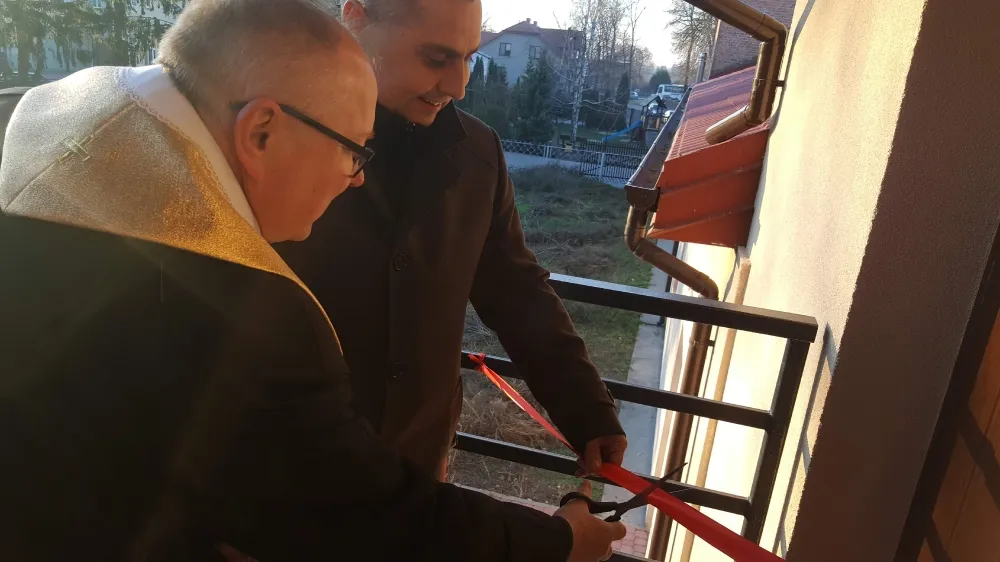 Uroczystego przecięcia wstęgi dokonali: Burmistrz Miasta i Gminy Drobin Andrzej Samoraj, Przewodniczący Rady Miejskiej w Drobinie Adam Zbigniew Kłosiński, Przewodnicząca Polskiego Związku Emerytów, Rencistów i Inwalidów – koła nr 3 w Łęgu Probostwie Zofia Joachimowicz, ks. proboszcz Zbigniew Józef Załęcki oraz członek Zarządu Powiatu w Płocku Bogdan Banaszczak.