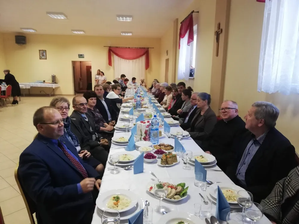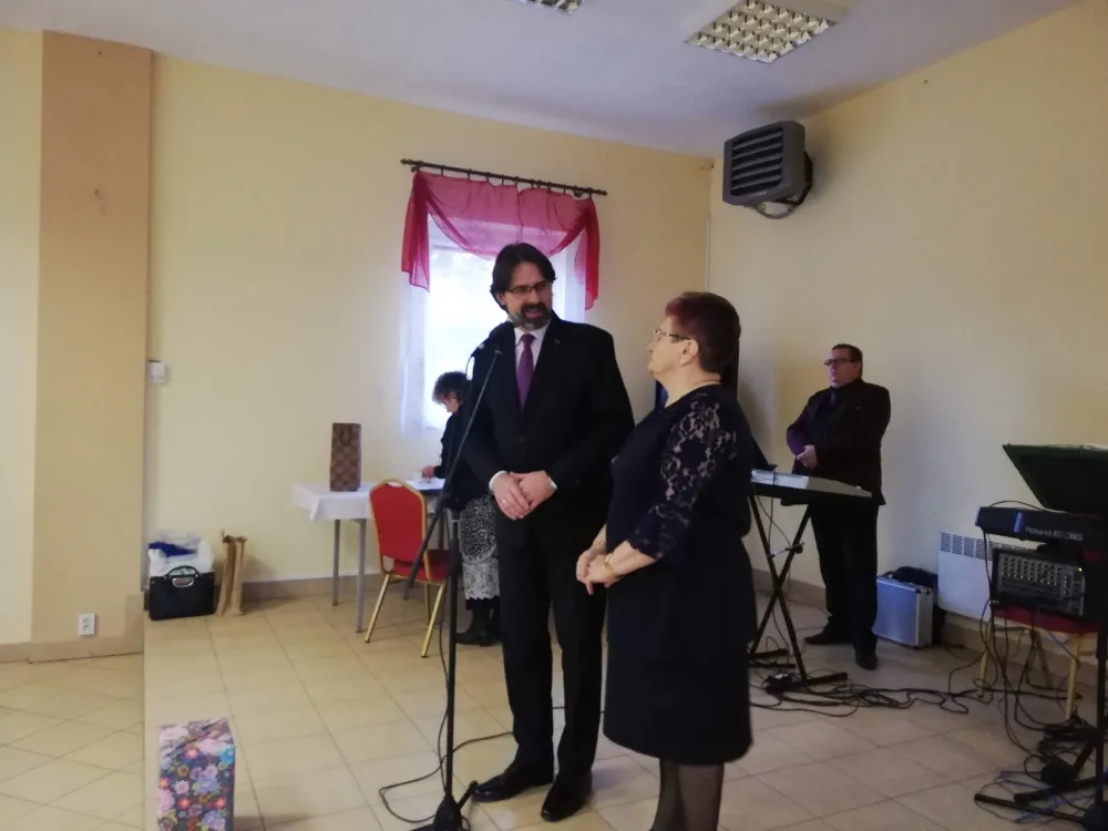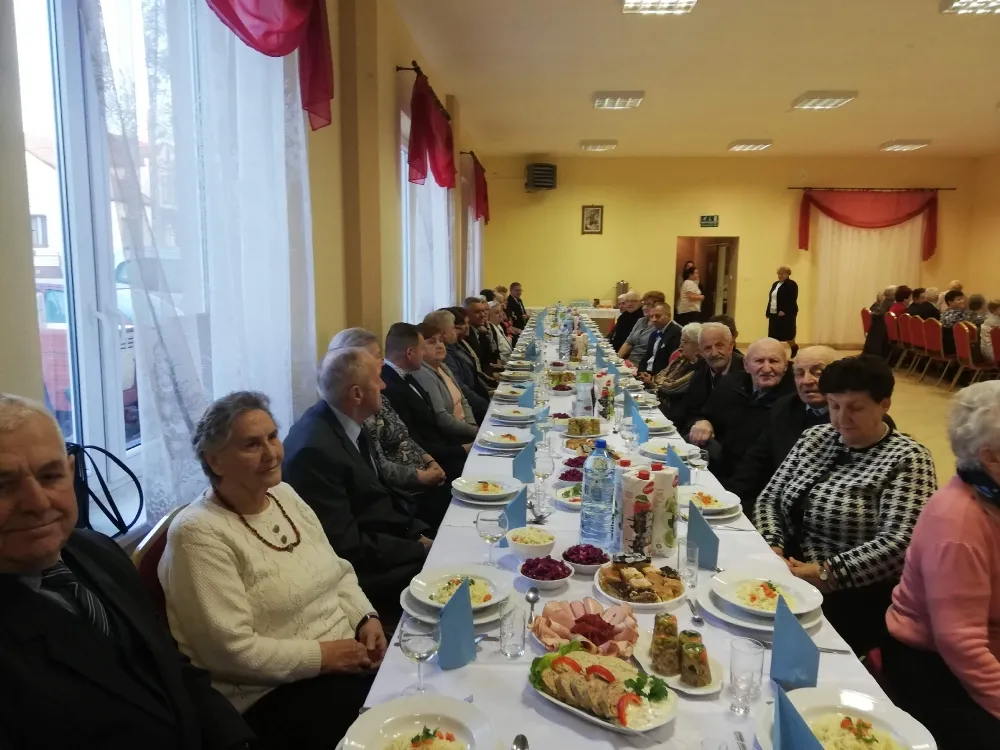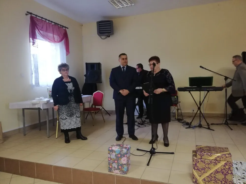 Po zwiedzaniu wszyscy udali się do sali OSP, gdzie miały miejsce oficjalne przemówienia i życzenia. Pośród licznych życzeń, pozdrowienia i upominki – w imieniu Starosty Płockiego oraz Radnego Rady Powiatu w Płocku Mariusza Bieńka – przekazał członek Zarządu Powiatu w Płocku Bogdan Banaszczak.