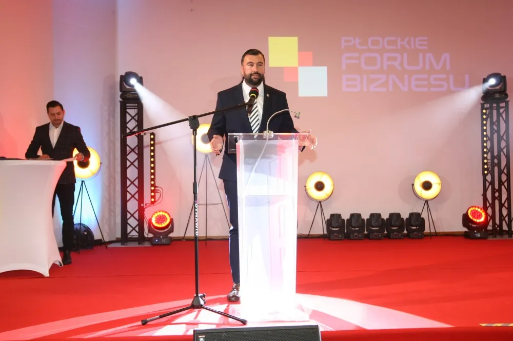 Głos zabrał również Starosta Płocki Mariusz Bieniek. – Mówi się, że ten, kto nie rozwija biznesu, traci go. Zgadzam się z tym – przyznał Starosta. I kontynuował, zwracając się do organizatorów: – Do tego rozwoju potrzeba oczywiście różnych uwarunkowań, a państwo stworzyli wszystko, żeby te uwarunkowania były jak najlepsze. Nam, samorządowcom Powiatu Płockiego, zależy, żeby na naszym terenie rozwijała się przedsiębiorczość, żeby przedstawiciele biznesu dobrze się u nas czuli i chcieli tu inwestować. Oferujemy państwu otwartość, życzliwość i pomoc. Zapraszamy do Powiatu Płockiego!