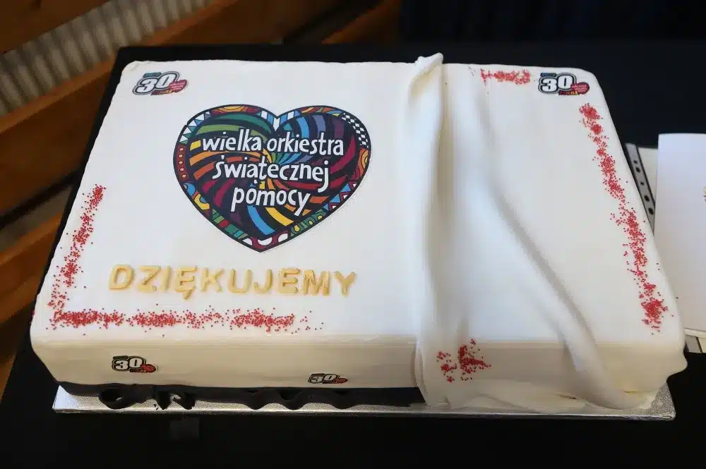 Wolontariusze, którzy przybyli do Bielska, otrzymali dyplomy z podziękowaniem za zaangażowanie w 30. Finał WOŚP, a zwieńczeniem uroczystości był przepyszny – i zarazem piękny – tort.