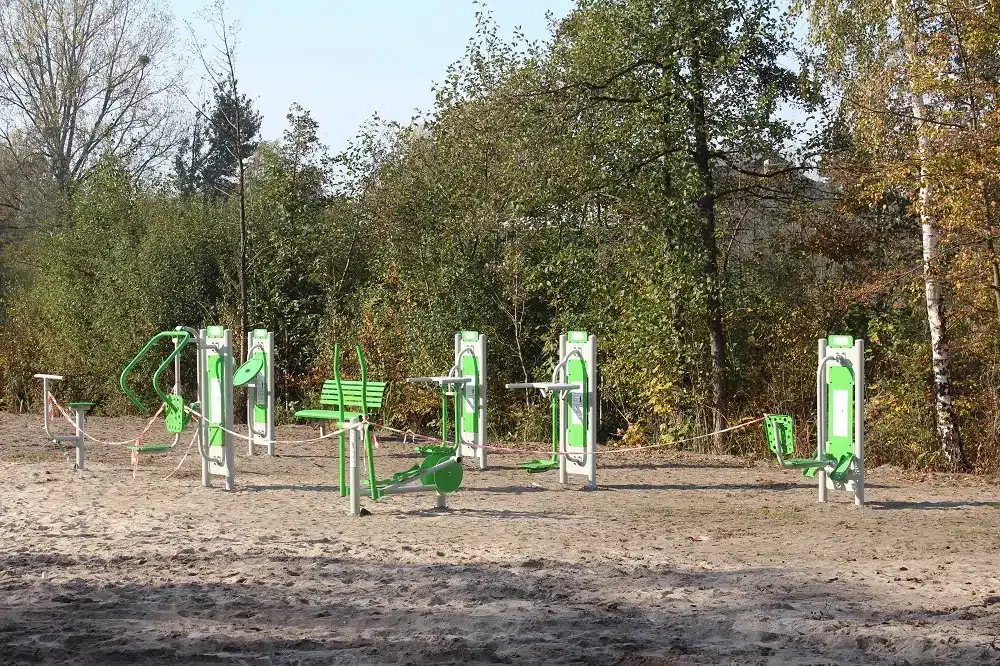 - ustawienia elementów małej architektury oraz montażu elementów wchodzących w skład siłowni na powietrzu,