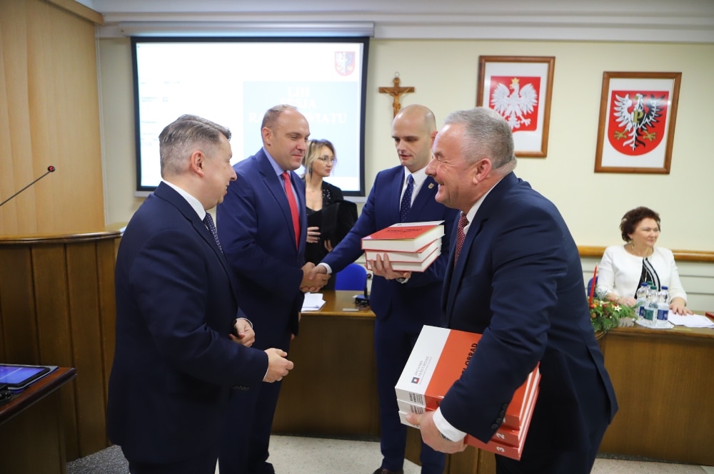 Kolejnymi gośćmi sesji byli Dyrektor Archiwum Państwowego w Płocku dr Tomasz Piekarski i dr Piotr Gryszpanowicz, którzy to ofiarowali Staroście oraz Przewodniczącemu Rady Powiatu III – tomową publikację – księgę obrad samorządu płockiego z lat 1916 – 1950. Zapis pracy ówczesnych radnych.