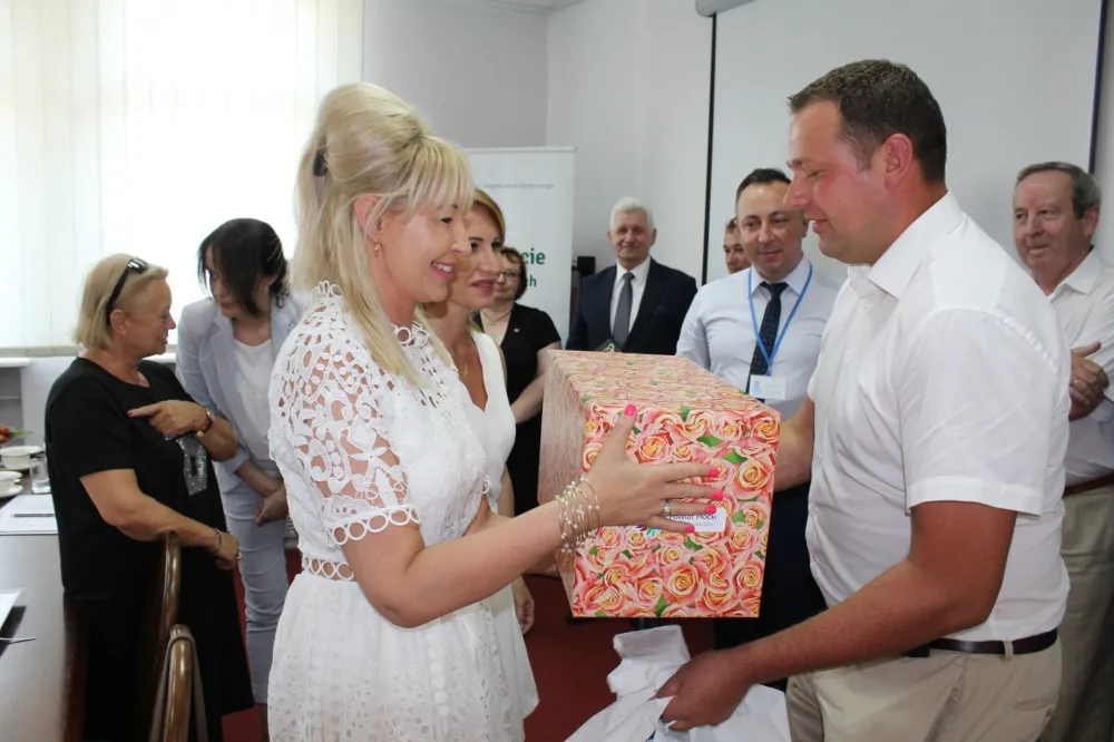 W uroczystym wręczeniu nagród i wyróżnień uczestniczyły Wicestarosta Iwona Sierocka i Dyrektor Wydziału Środowiska i Rozwoju Obszarów Wiejskich Dorota Zakrzewska, które wspólnie, w imieniu Samorządu Powiatu Płockiego, przekazały gratulacje i upominki rolnikom, którzy wzorowo dbają o bezpieczeństwo na terenie własnych gospodarstw.