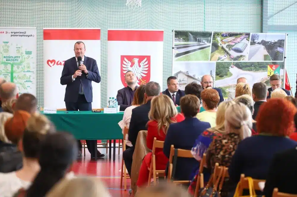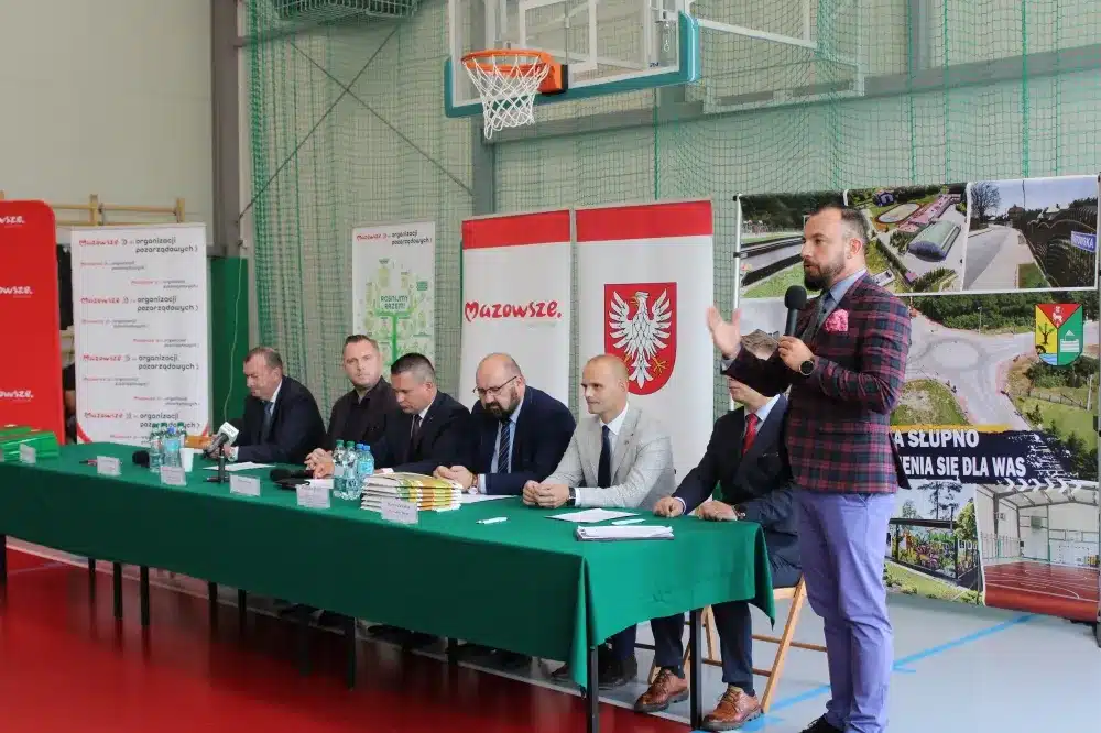 W czwartek, 15 września, umowy z beneficjentami w hali sportowej Szkoły Podstawowej w Liszynie podpisał Wicemarszałek Mazowsza Wiesław Raboszuk. W spotkaniu wzięli również udział Wiceprzewodniczący Sejmiku Województwa Mazowieckiego Mirosław Adam Orliński, Radny Województwa Mazowieckiego Konrad Wojnarowski, Dyrektor płockiej delegatury Urzędu Marszałkowskiego Województwa Mazowieckiego Tomasz Kominek, Wójt Gminy Słupno Marcin Zawadka.