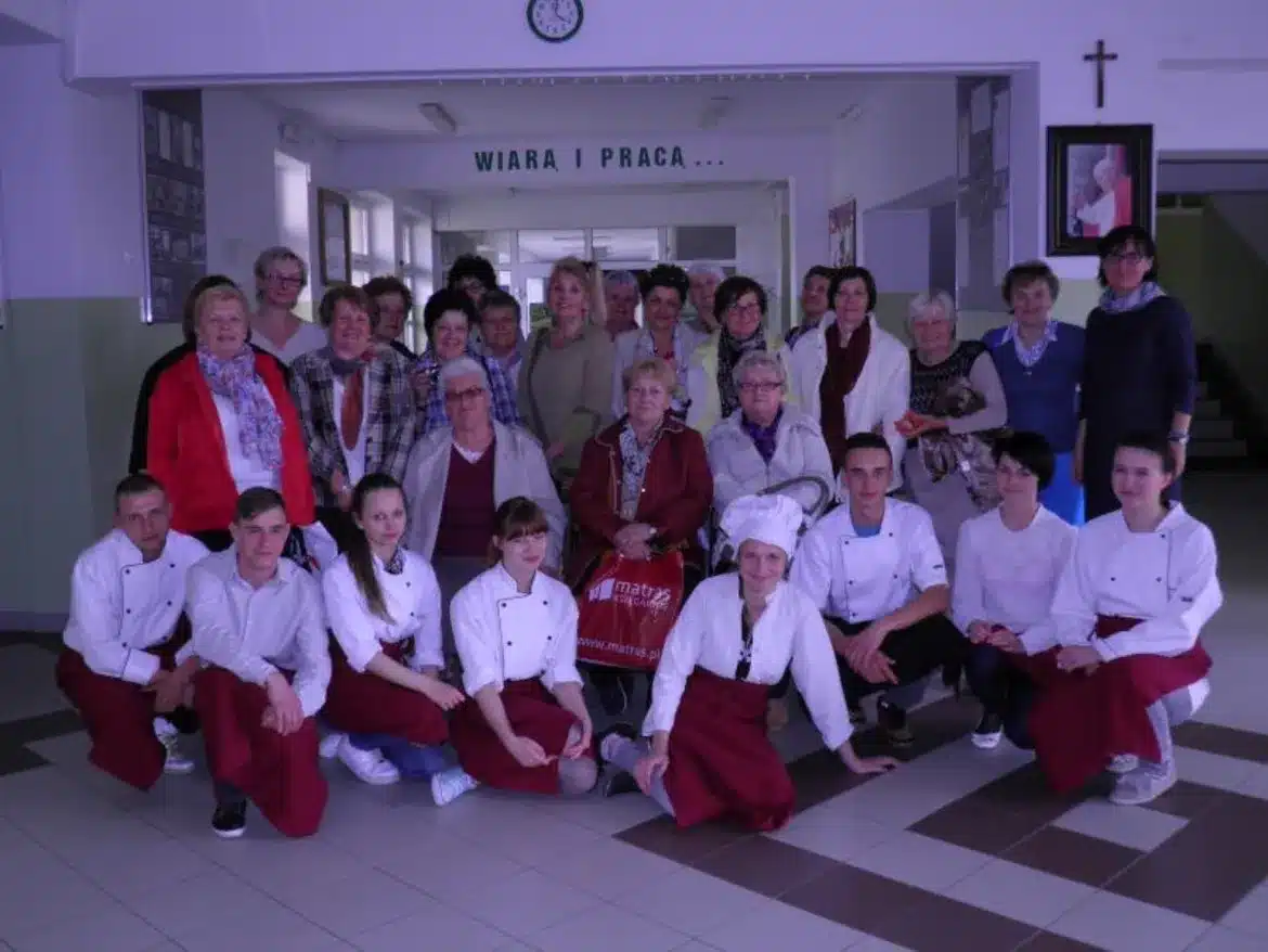 i w dobry humor wprowadził Dyrektor Szkoły Pan Jacek Kłosiński. Uczniowie przygotowali dla gości warsztaty: CARWINGU, JUNIOR GOTUJE, SENIOR DEGUSTUJE oraz zestawy przepisów sporządzonych potraw. Przygotowane potrawy zdobyły uznanie gości, a rzeźbienie w warzywach i owocach zafascynowało wiele pań. Nić porozumienia pomiędzy seniorkami a młodzieżą zawiązała się bardzo szybko. Mimo różnicy pokoleń i jedni i drudzy mają sobie wiele do zaoferowania. Doświadczenie seniorek i energia młodości to całkiem dobre zestawienie.