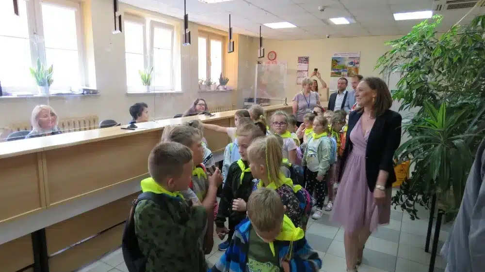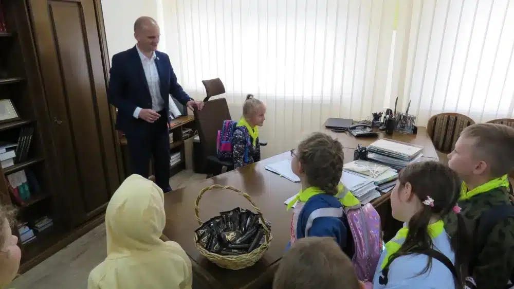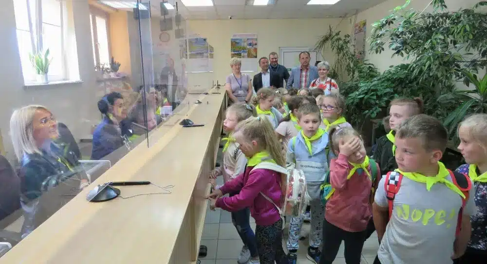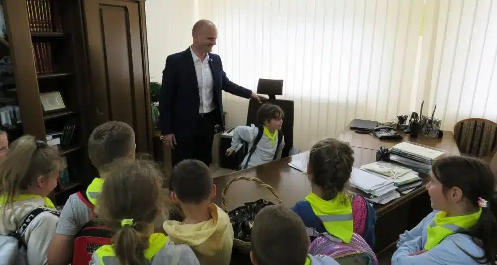Przedszkolaki chciały sprawdzić, czy Starosta ma wygodny fotel, jak duży ma gabinet, były ciekawe, czym się zajmuje każdego dnia i na czym polega jego praca. Sylwester Ziemkiewicz chętnie odpowiadał na wszystkie pytania, a żeby osłodzić dzieciom ten nieco pochmurny dzień, miał dla nich słodki poczęstunek. Przedszkolaki też nie przyjechały z pustymi rękami i wręczyły Staroście własnoręcznie przygotowany piękny obrazek.