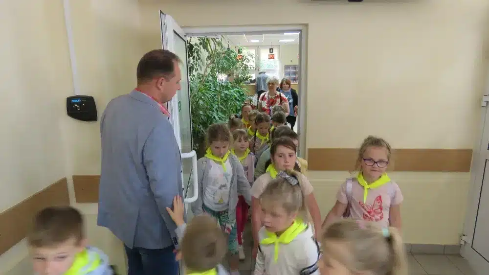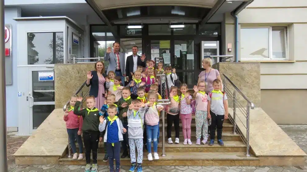 I tak oto w piątek, 10 czerwca, „Pszczółki”, czyli grupa zerówkowa z Samorządowego Przedszkola w Bielsku, odwiedziła Starostwo Powiatowe w Płocku. Dzieci i ich opiekunów serdecznie przywitał Starosta Sylwester Ziemkiewicz, a także towarzyszący mu Sekretarz Powiatu Michał Twardy oraz Dyrektor Wydziału Rozwoju Gospodarczego i Promocji Karolina Koper.