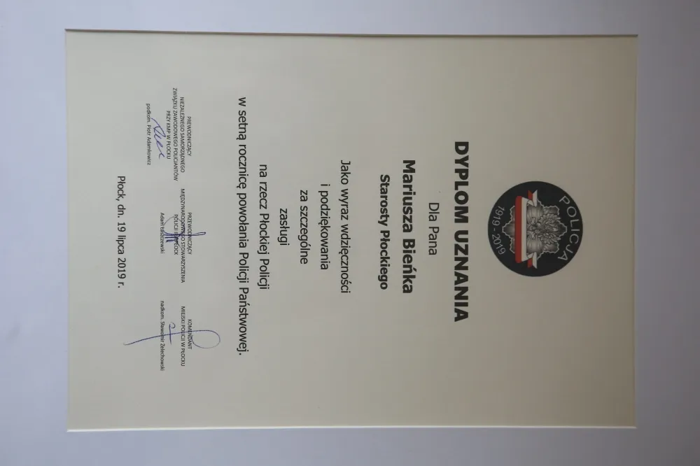 Obok niezliczonych gratulacji, życzeń oraz wyrazów uznania przekazano również liczne odznaczenia i medale. Marszałek Województwa Mazowieckiego odznaczył Komendę Miejską Policji w Płocku medalem „Pro Masovia”. Starosta Płocki Mariusz Bieniek medalem „Zasłużony dla Powiatu Płockiego”. Prezydent Miasta Płocka wyróżnił natomiast policjantów wydziału prewencji. Nie zabrakło również podziękowań jakie kierownictwo KM Policji w Płocku skierowało do przedstawicieli lokalnych samorządów oraz osób na co dzień współpracujących z Komendą. Wśród odznaczonych znalazł się także Starosta Płocki Mariusz Bieniek. Podczas uroczystości ponad 100 funkcjonariuszy zostało nominowanych na wyższe stopnie policyjne.