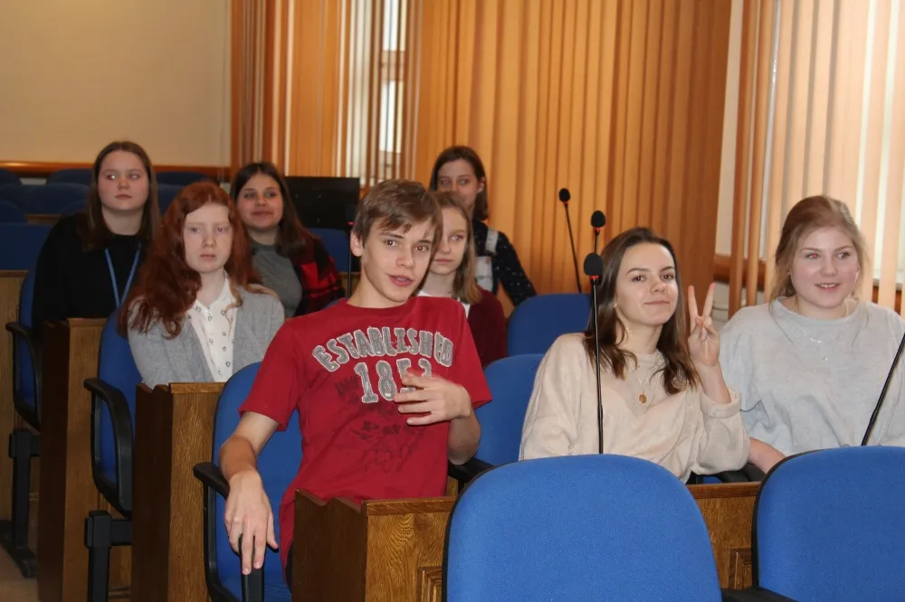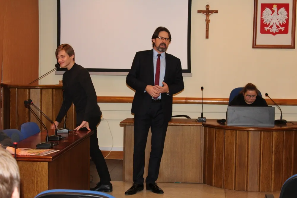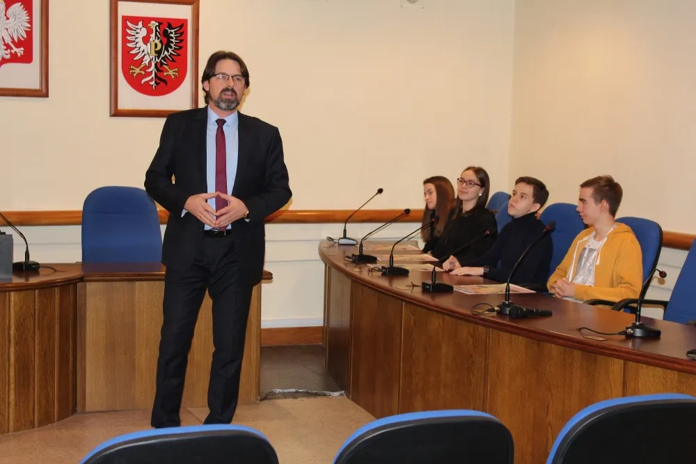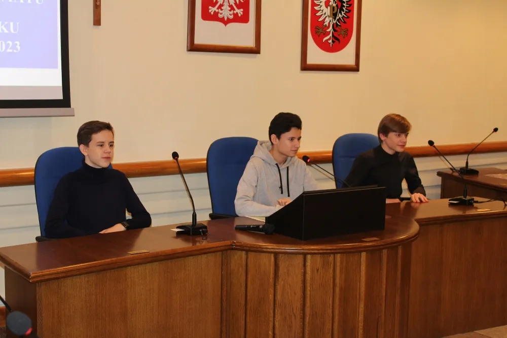 Uczniowie obejrzeli urząd „od środka”, przyjrzeli się np. pracy Wydziału Komunikacji czy Wydziału Geodezji i Gospodarki Nieruchomościami, byli w sali obrad Rady Powiatu. I właśnie to ostatnie miejsce zafascynowało ich najbardziej.