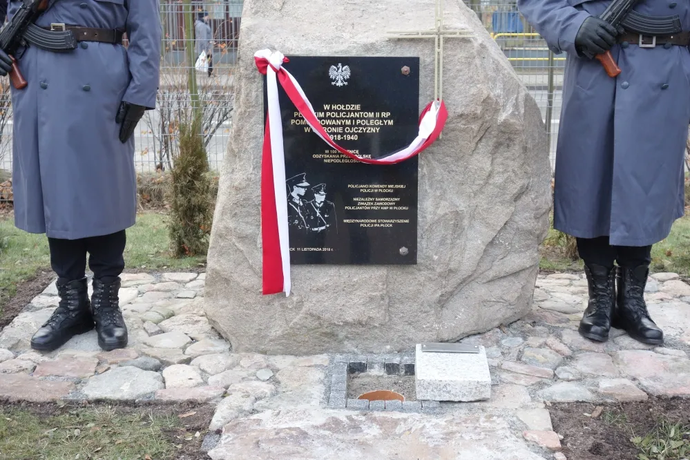 Komendant Wojewódzki Policji z siedzibą w Radomiu, przemawiając do zebranych, podziękował za inicjatywę, dzięki której w roku setnej rocznicy odzyskania przez Polskę niepodległości i u progu roku, w którym obchodzić będziemy setną rocznicę powołania Policji, możemy uczcić płockich policjantów II RP, których losy nie były łatwe. Komendant podziękował wszystkim, którzy przyczynili się do tego, że obelisk upamiętniający właśnie tych policjantów powstał. Mówił, że to bardzo ważne, aby nie zapominać o funkcjonariuszach policji z tamtych lat, że wszyscy musimy oddać im cześć, za ich determinację i oddanie odrodzonej Ojczyźnie.