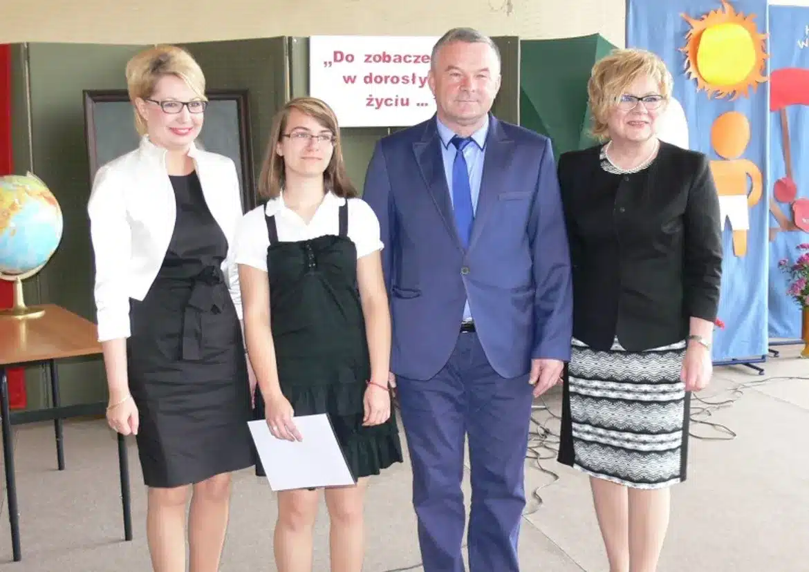 Kolejny rok szkolny za Wami. Przez dziesięć miesięcy chłonęliście wiedzę, uczyliście się rzeczy, które nie tylko zwiększały zakres Waszej wiedzy, ale przede wszystkim przygotowywały Was do konstruktywnego, twórczego myślenia, analizowania faktów i wysnuwania własnych przemyśleń. Moi drodzy, nauka to też praca, to wchłanianie niezliczonych ilości pojęć, wzorów, lektur, procesów zachodzących w naturze, to praca odkrywania nowych, nieznanych Wam tajemnic naszego świata – mówiła Wicestarosta do młodzieży. Dziękuję Państwu za trud i czas poświęcony wychowaniu, kształceniu i nauczaniu. Życzę aby nie zabrakło Wam zapału do dalszej pracy dydaktycznej i wychowawczej, a kończący się rok szkolny dał poczucie satysfakcji i spełnienia. – zwróciła się do nauczycieli.