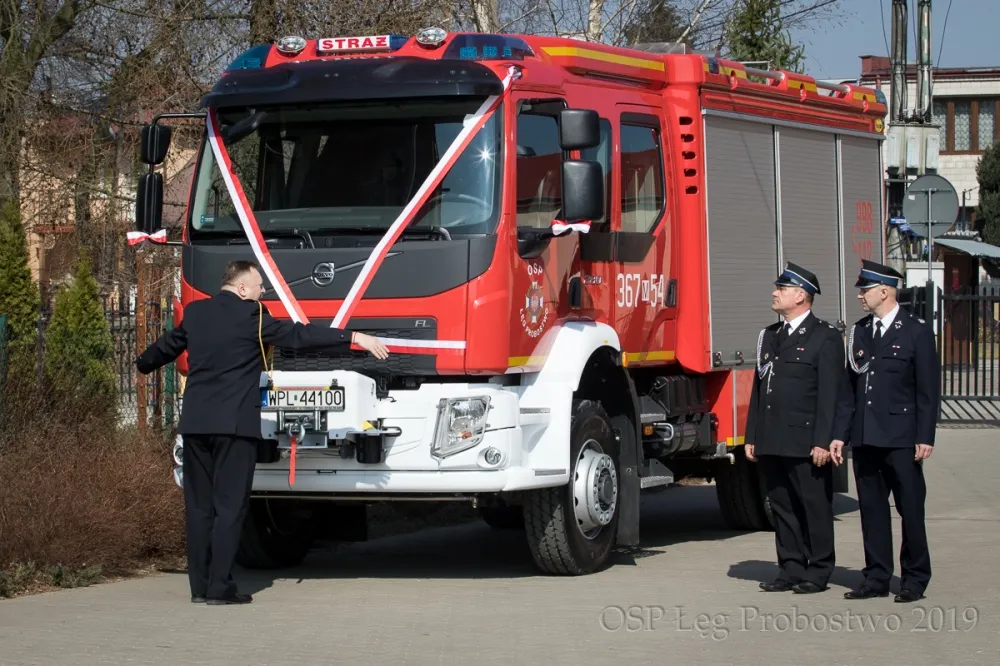 Starostwo Powiatowe w Płocku Wiadomości Uroczystość przekazania nowego samochodu ratowniczo-gaśniczego Volvo i 96. rocznicy powstania OSP w Łęgu Probostwie