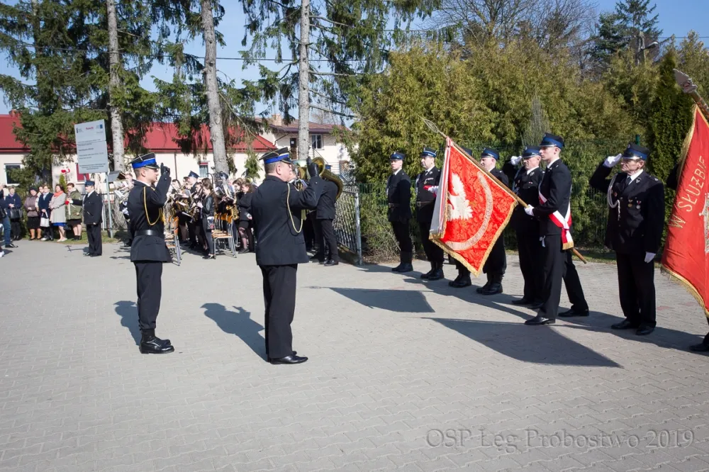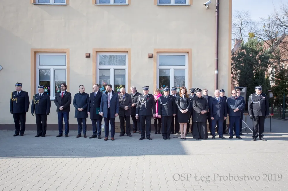 Uroczystą mszą świętą w intencji strażaków w kościele parafialnym w Łęgu Probostwie odprawioną przez proboszcza parafii ks. Zbigniewa Załęckiego rozpoczęły się uroczystości związane z przekazaniem nowego samochodu ratowniczo-gaśniczego Volvo i 96. rocznicy powstania OSP w Łęgu Probostwie. Następnie druhowie a także zaproszeni goście przemaszerowali na plac przed Szkołą w Łęgu Probostwie, gdzie rozpoczęła się oficjalna część uroczystości. Przy zgromadzonych mieszkańcach i gościach, nastąpiło złożenie meldunku gotowości do rozpoczęcia uroczystości z okazji poświęcenia samochodu pożarniczego, następnie odśpiewano hymn państwowy i podniesiono flagę na maszt.