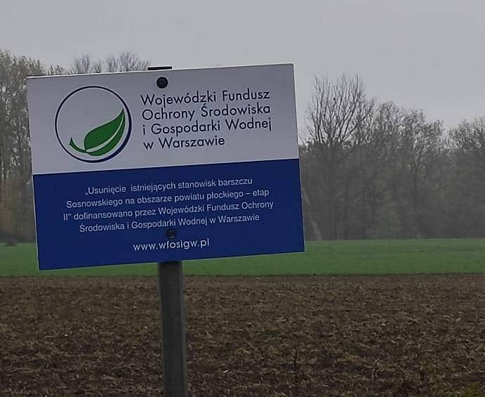 Wydział Środowiska i Rozwoju Obszarów Wiejskich informuje, iż dobiegła końca realizacja zadania pn. „Usunięcie istniejących stanowisk barszczu Sosnowskiego na obszarze powiatu płockiego – etap II” realizowanego w ramach Programu „Zadania z zakresu ochrony przyrody” finansowanego ze środków Wojewódzkiego Funduszu Ochrony Środowiska i Gospodarki Wodnej w Warszawie (WFOŚiGW).