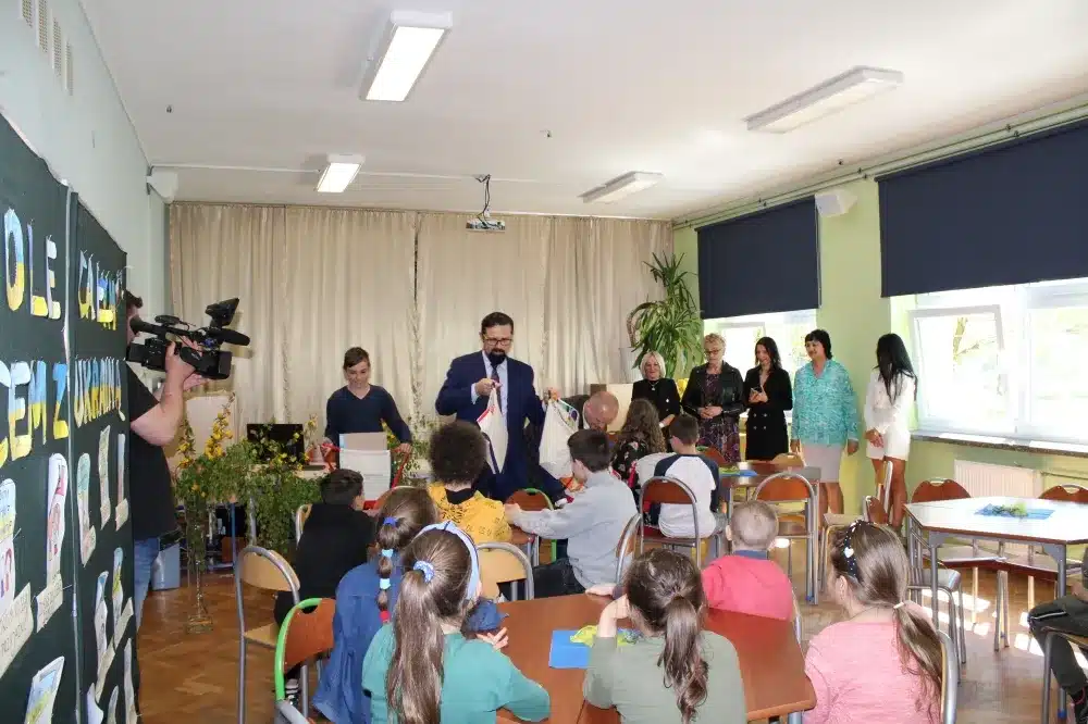 We wtorek, 10 maja, w SP im. Marszałka Józefa Piłsudskiego w Drobinie odbyła się miła uroczystość, podczas której uczniowie z Ukrainy po raz kolejny mogli poczuć, że są tu bardzo mile widziani, a Polska jest ich drugim domem. Dzieci otrzymały upominki od Samorządu Powiatu Płockiego i wszystkich mieszkańców, którzy od początku wojny w Ukrainie ofiarowują, co mogą, by uchodźcom było u nas po prostu dobrze.
