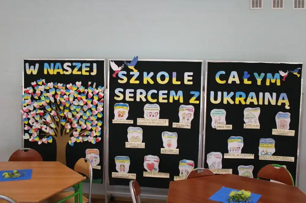 Szkoła Podstawowa im. Marszałka Józefa Piłsudskiego w Drobinie kilka tygodni temu otworzyła swoje progi dla 35 młodych ludzi z Ukrainy, którzy – wraz ze swoimi bliskimi – znaleźli u nas schronienie przed toczącą się w ich kraju wojną. Uczniowie, dyrekcja i kadra szkoły każdego dnia udowadniają, że wrażliwość, przyjaźń i empatia nie mają narodowości i granic. Uchodźcy zostali przyjęci z ogromną życzliwością.
